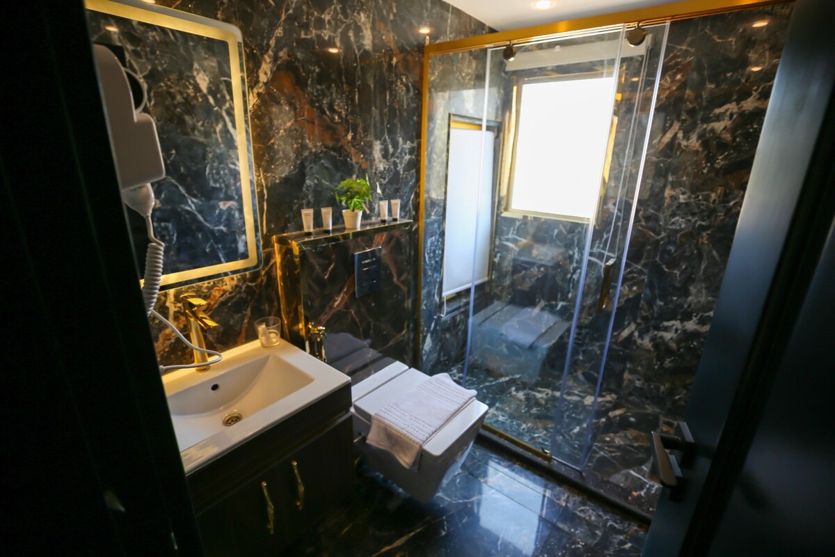 cette élégante chambre est située au cœur du centre-ville du Caire, à 500 mètres de l'emblématique place Tahrir. La chambre est à 3 minutes à pied du musée égyptien et est entourée de toutes sortes de restaurants et de cafés. la chambre dispose d'un lit queen size confortable, d'une télévision connectée, d'une climatisation, d'une connexion Wi-Fi, d'un minibar , d'une salle de bains privative confortable et d'une cuisine partagée. nous fournissons également un petit-déjeuner gratuit.