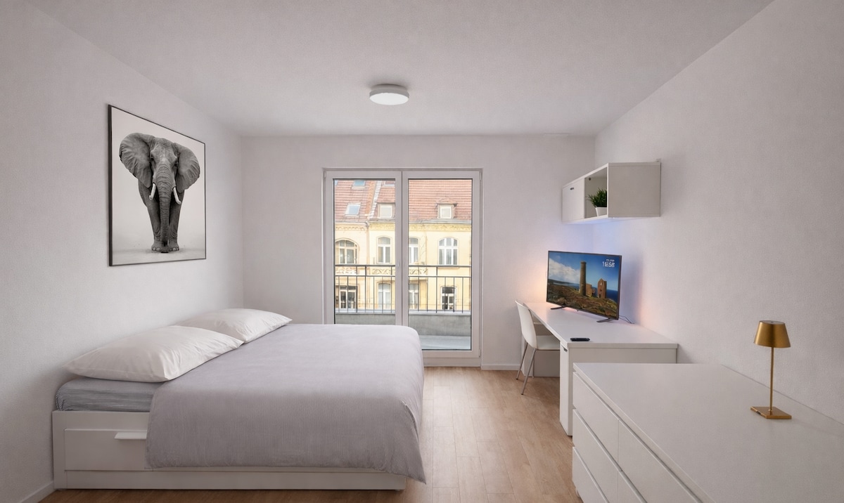 Appartement 1 pièce exclusif et ensoleillé dans le centre-ville de Cologne pour 1 à 2 personnes ; espace ouvert, chauffage par le sol, lit confortable (1,40 x 2 m), coin salon élégant, cuisine, meubles encastrés de haute qualité ; salle de bain moderne avec lumière du jour/meubles exclusifs ; Wi-Fi haut débit jusqu'à 100 Mbit/s ; éclairage sophistiqué. À 3 min des rues commerçantes, restaurants et bars à proximité, à 800 mètres de la cathédrale, autoroute A57 en voiture en 5 min. Réservations de 90 jours ou plus sur demande.