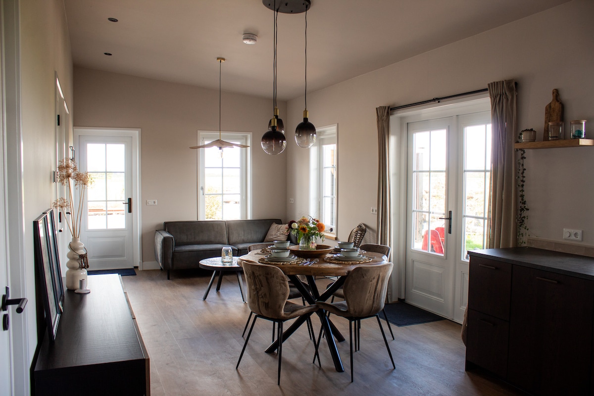 Un coin repas compact et de bon goût avec une belle vue. Une kitchenette avec plaque à induction du réfrigérateur Nespresso et un micro-ondes. Inconvénients de base fournis (vinaigre d'huile de sel au poivre de café). Toilettes privées. Aux portes arrière de la terrasse (également entrée) jardin privé (sur SW) véranda et 2e terrasse (table à manger, 2 chaises longues et barbecue au gaz). De l'escalier du salon à l'étage avec chambre de luxe lumineuse avec lit King Size, salle de bain moderne, douche et double lavabo. Très calme et à 1,5 km de Domburg et de la plage !