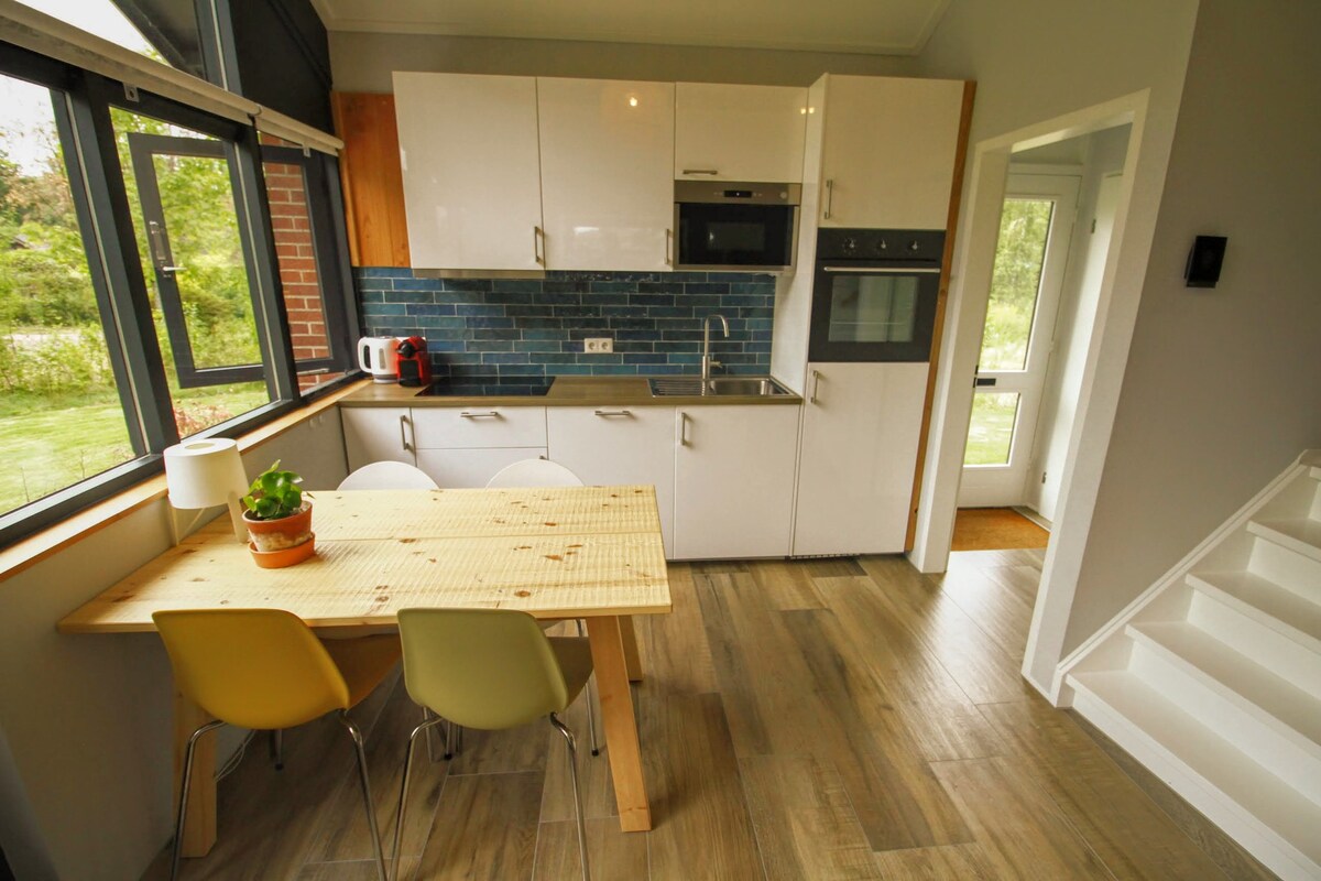 Chalet confortable dans la nature sur une ancienne ferme à Vragender, adapté pour 6 personnes. Cette maison est entourée d'un grand jardin et en plus de prairies verdoyantes et de nature. La maison dispose d'un salon avec jeux, cuisine entièrement équipée, salle de bain, toilettes séparées et 3 chambres (2x double, 1x deux simples). Comprend une machine à laver, un sèche-linge et un réfrigérateur-congélateur. À l'extérieur, il y a 2 sièges et un abri avec un point de recharge pour les vélos. La literie, les serviettes et les serviettes de cuisine sont inclus.