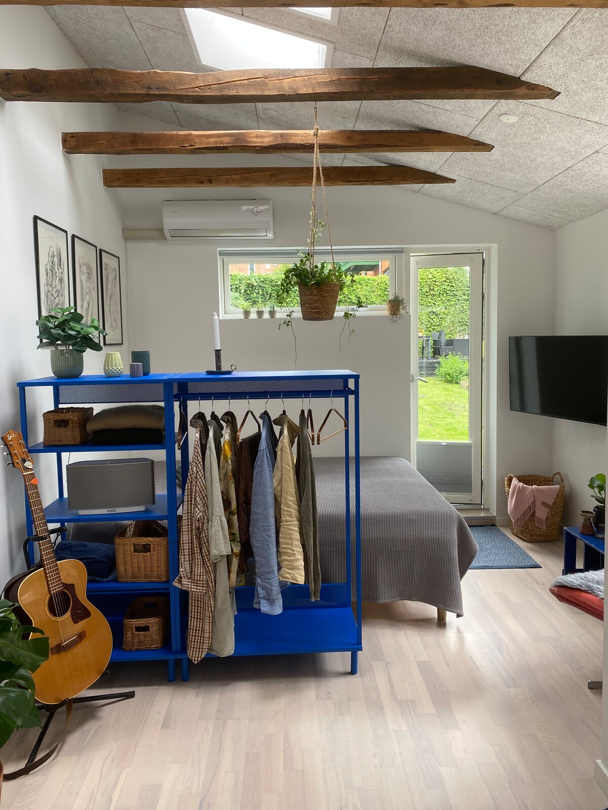 Restez tranquille au milieu d'un environnement verdoyant avec la forêt de Hans Broges comme voisin le plus proche, à quelques minutes à pied du magnifique lac Brabrand, de sentiers confortables et de courts de tennis locaux. En même temps, vous n'êtes qu'à 5-10 minutes à pied des transports en commun et à 14 minutes en bus du cœur d'Aarhus. Ce que nous offrons : * Hébergement privé et calme avec chambre pour 2 personnes (lit double 140x200) * Kitchenette avec cuisinière, réfrigérateur, évier et table pliante * Toilettes et douche privées * Accès au terrain de pétanque, foyer, sièges extérieurs