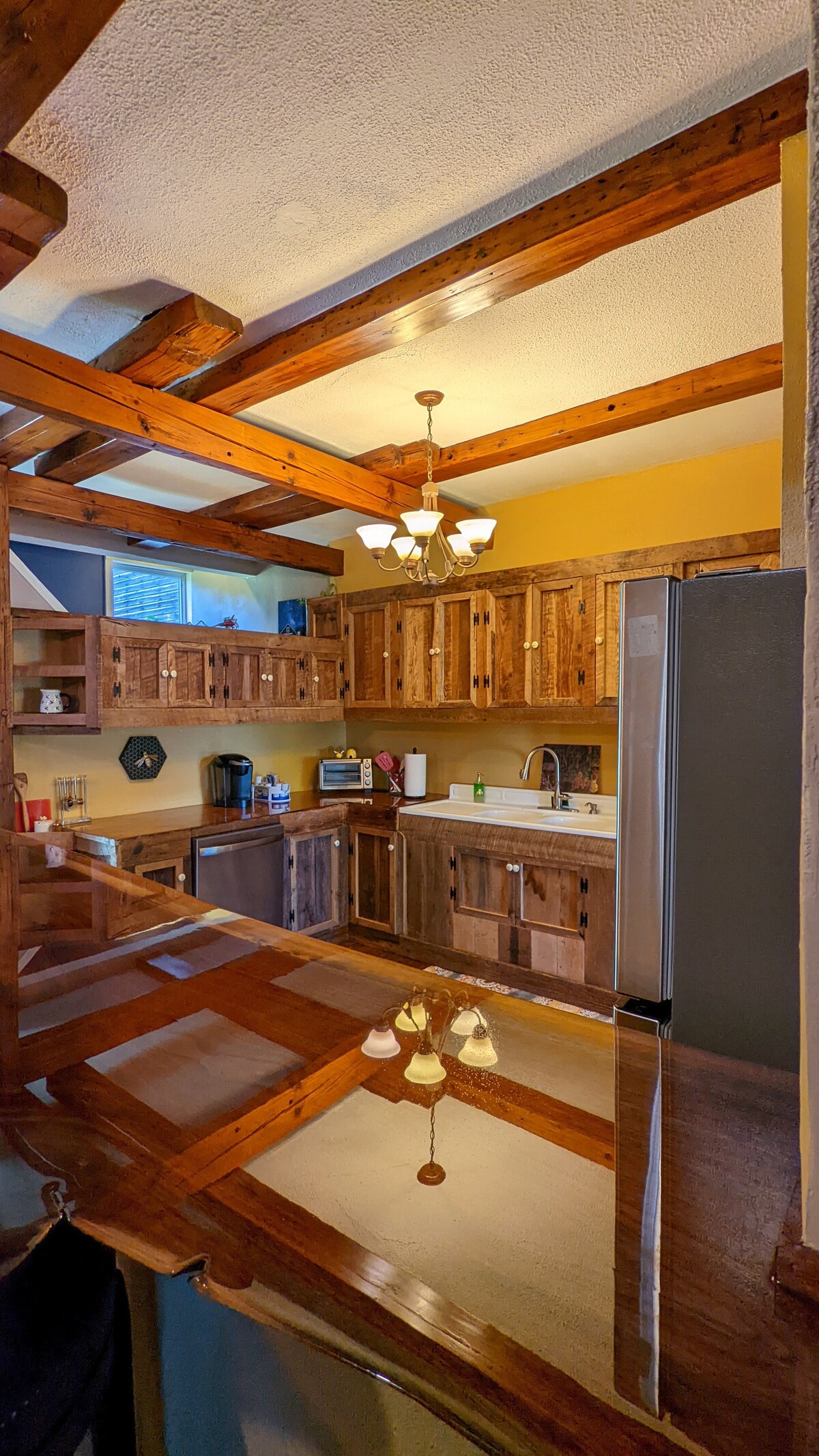 La maison dispose de 3 chambres. La chambre principale dispose d'une salle de bain privée. Les deux autres chambres partagent une salle de bain complète. Il y a un chariot à café/thé dans le hall avec une machine Keurig K-cup, des tasses, des cuillères, des fourchettes, des couteaux et des collations. Il y a aussi un petit réfrigérateur et un four à micro-ondes. Il n'y a PAS de cuisine. Le réfrigérateur contiendra des bouteilles d'eau et du lait et de la crème. N'hésitez pas à me faire savoir si vous souhaitez autre chose dans le réfrigérateur, comme du lait ou de la crème épaisse pour votre café/thé.