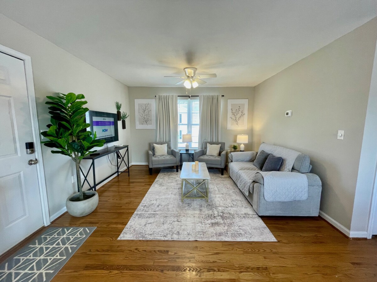 Espace confortable pour une escapade ! Situé à un pâté de maisons de Main Street et à distance de marche du centre-ville historique d'Abingdon. Nous nous efforçons de rendre votre séjour spécial. L'appartement dispose d'une connexion Wi-Fi améliorée, d'un espace de travail pour votre tablette ou votre appareil. Télévision Roku, cuisine complète et chambre privée avec lit Queen Size. Canapé-lit adapté à deux enfants ou à un adulte. Le patio de la cour arrière comprend une maison de jeu pour les enfants avec balançoires, toboggan et tyrolienne. Accès au Creeper Trail depuis le séjour via l'Abingdon Urban Pathway.