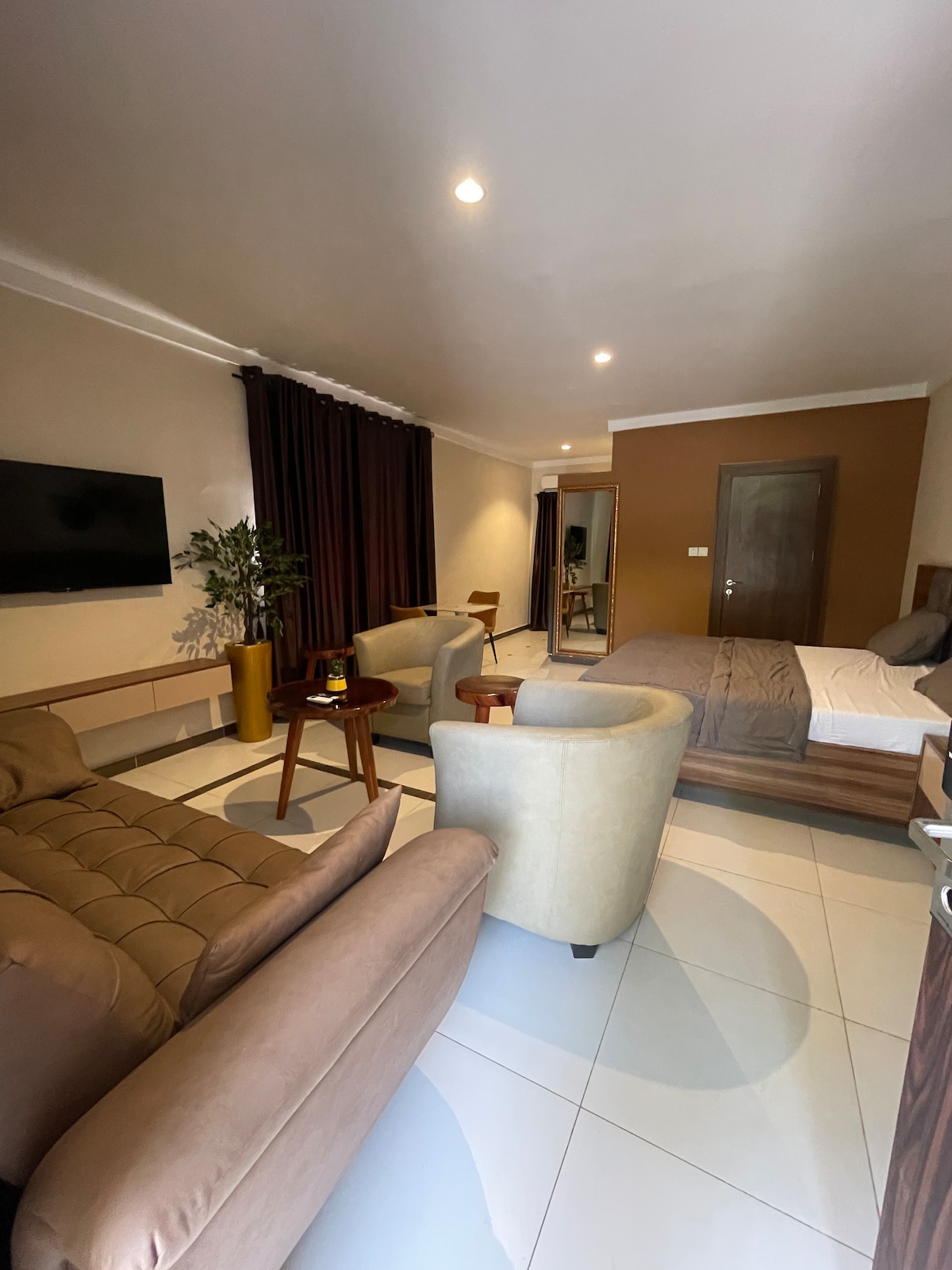 Un appartement exquis et meublé avec goût, adapté à votre court et long séjour, stratégiquement situé dans le meilleur domaine de la capitale du Nigeria - Abuja, le long de l'Airport Road, une artère majeure qui relie le domaine au cœur de la ville et à l'aéroport international Nnamdi Azikiwe. Cet emplacement privilégié garantit que les résidents ne sont jamais trop loin des services essentiels, des quartiers d'affaires et des centres de divertissement.