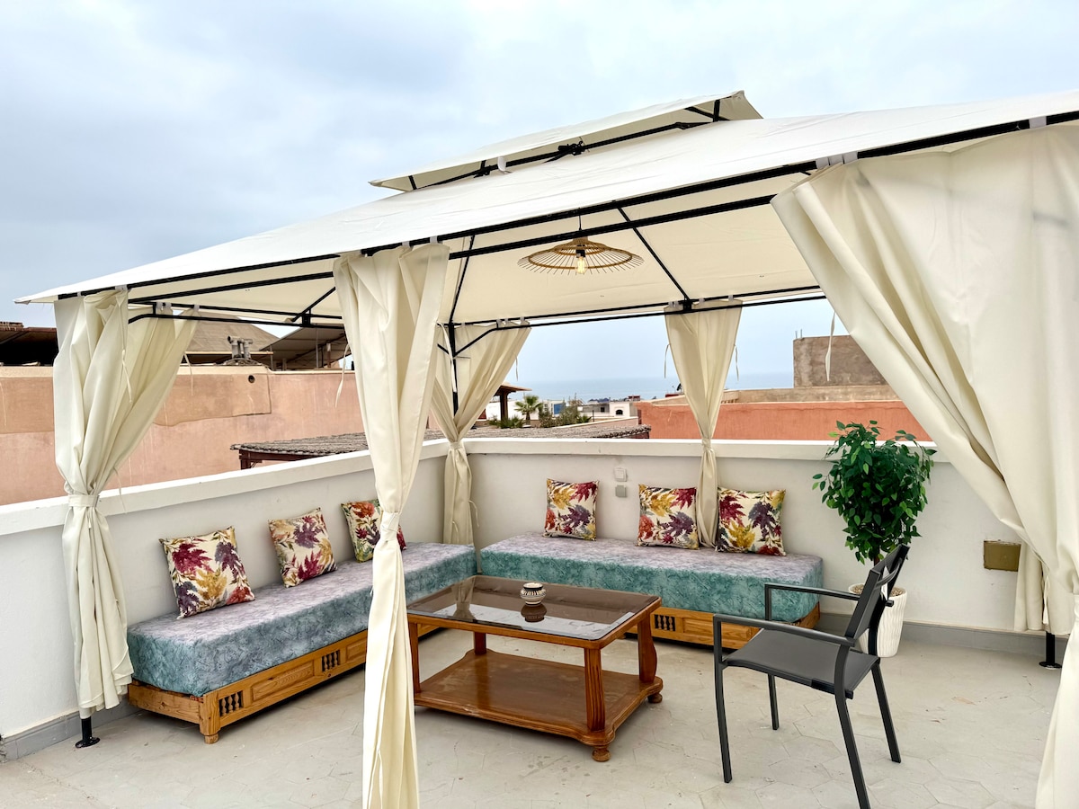 Le Riad Terracotta Boutique Hotel, rénové avec soin, allie élégance et confort entre tradition et modernité. Idéalement situé à Tamraght, près des sites touristiques, il est entièrement privatisé. Sur 3 niveaux, il comprend un salon familial, une cuisine équipée, 3 chambres avec salle de bain privative, un salon de loisir polyvalent, une grande terrasse ensoleillée avec une pergola ombragée. Un cadre parfait pour un séjour en famille ou entre amis !