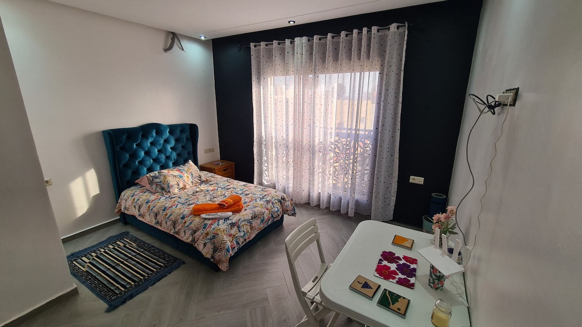 Excellent appart spacieux à 2 minutes à pied de la plus grand bazar d'Afrique souk Elhad offre tout le confort nécessaire pour un séjour agréable. Il comprend : 2 chambres : une avec un lit double et l'autre avec deux lits jumeaux, salon avec TV IPTV wifi, salle à manger, cuisine équipée, salle de bain avec WC, terrasse spacieuse idéale pour se détendre et prendre un bain de soleil. Emplacement proche toutes commodités et centre ville. Il est situé à 5 minutes en voiture de la plage .