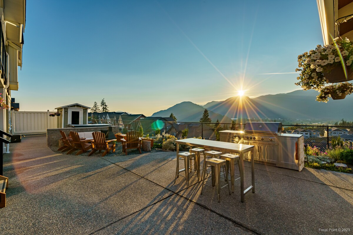 Juste à côté de l'autoroute 1 avec vue sur la chaîne de montagnes de Cheam. Suite moderne de 2 chambres au sous-sol dans une rue calme. À quelques minutes en voiture des chutes Bridal, des parcs aquatiques, de Harrison Hot Springs et de nombreuses autres belles activités en pleine nature. À 12 minutes en voiture de Chilliwack. Profitez d'une bonne tasse de café le matin et détendez-vous le soir dans le jacuzzi. Nous sommes une famille avec trois enfants à la maison, bien que nous ne soyons pas bruyants et que la suite soit bien isolée, vous pouvez vous attendre à du bruit vivant.