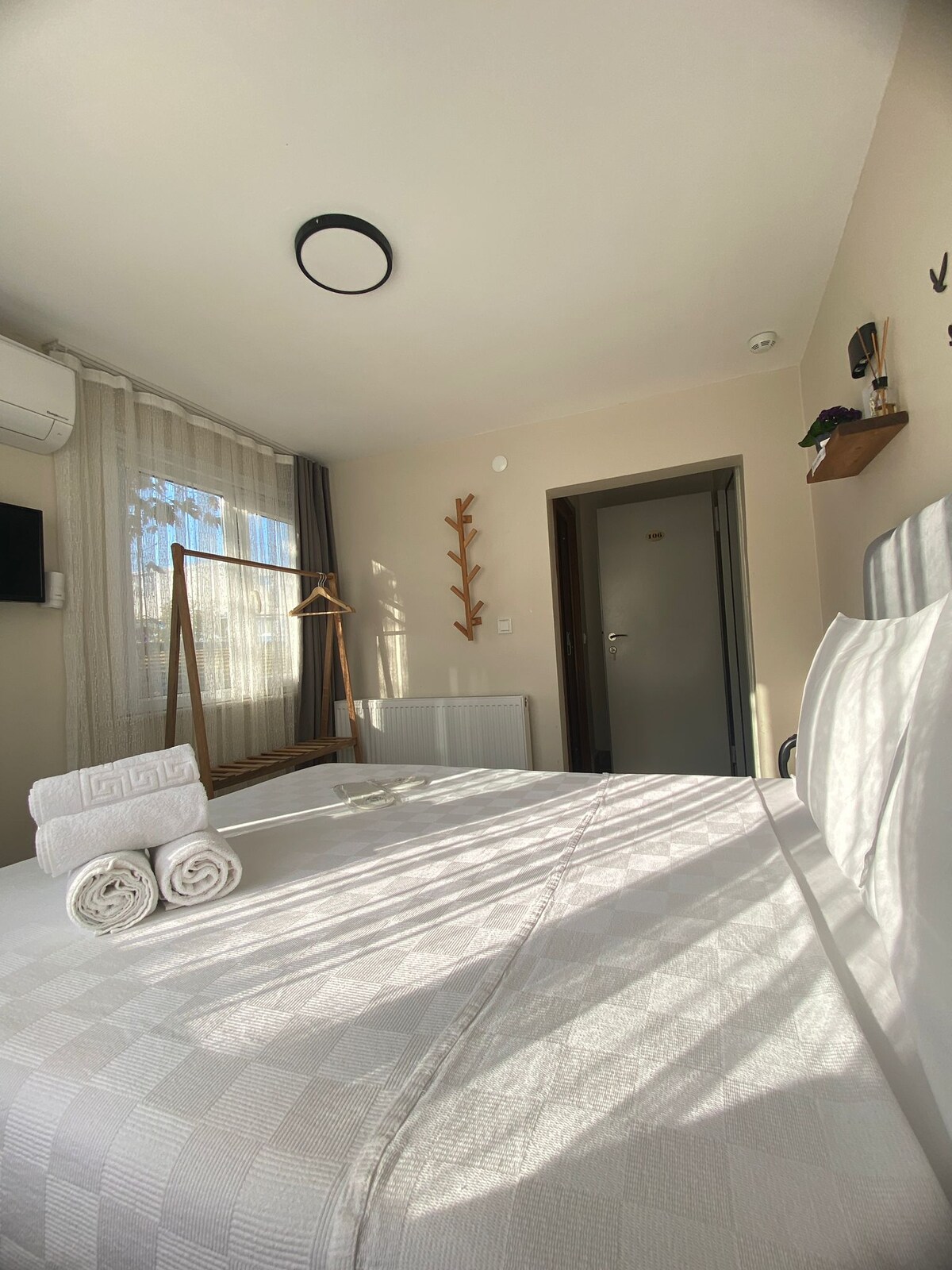 Vous pouvez séjourner confortablement et confortablement dans notre studio spacieux et spacieux pour deux personnes. Notre chambre est avec un grand lit double. Il est équipé d'une télévision connectée et de la climatisation. Nous disposons d'un service WiFi. La réception 24h/24 est à votre service. Bien que notre boutique-hôtel bénéficie d'un emplacement idéal, il se trouve dans la rue de cafés, fréquentés par des jeunes.