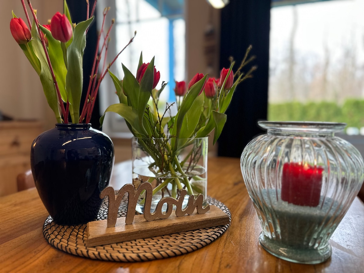 ... regardez de votre lit sur l'eau, profitez du calme et de la tranquillité et écoutez le bruissement de la forêt de hêtres, faites des excursions à vélo directement sur l'eau et profitez de la nature. Une belle maison à colombages moderne et rustique à faible consommation d'énergie avec toit de chaume, carreaux marocains, planchers de chêne et murs en plâtre d'argile vous attend. Pour les activités, il y a un beau grand jardin avec une balançoire dans la forêt, un sauna à vapeur gratuit, une douche et une baignoire extérieures, une planche de paddle, un pédalo et 4 vélos.