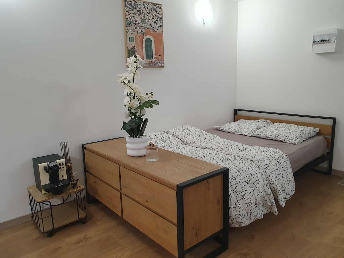 Vous trouverez votre logement à côté de ma maison, vous aurez votre chambre avec un vrai lit double et les sanitaires privés. Le logement a son propre accès, ce qu'il vous rend complètement autonome. Le plus : La clim!! Il y a des places de voitures devant la maison. Des lignes de Bus sont à moins de 5 minutes pour vous emmener au centre de Lyon, ou à la gare de la Part Dieu en direct. Tout proche de A6, A7, mais la maison est très calme. La clinique de la Sauvegarde sont à 10 minutes à pieds.