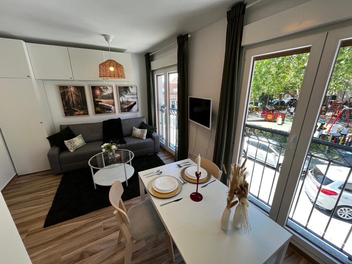 Bel appartement lumineux résultant d'une rénovation intégrale d'une modeste habitation. La rénovation a été achevée en octobre 2021. Appartement conçu et conçu exclusivement pour un usage touristique. L'appartement dispose de 2 chambres avec lit double, salon-salle à manger, cuisine entièrement équipée, deux salles de bains et d'un patio privé. Situé à 5 minutes à pied du centre historique et de la gare. Important : s'il vous plaît avant de faire la réservation lire les règles de la maison.