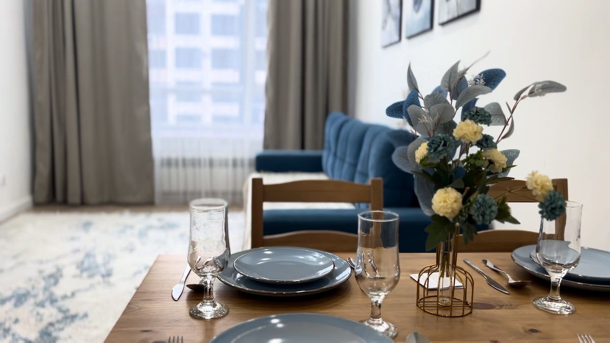 Cet appartement est conçu pour ceux qui apprécient le style, la propreté et le confort. 🏙 Situé dans un quartier prestigieux, à distance de marche du centre commercial Khan Shatyr, d'Asia Park, ainsi que des principaux centres médicaux de la ville : une clinique de maternité et d'enfance, un centre de cardiologie. L'Opéra d'🎭Astana se trouve à 20 minutes à pied. 🛋 À l'intérieur, il y a de beaux meubles design, un intérieur bien pensé, de l'air frais et du silence. Tout pour que vous vous sentiez comme chez vous
