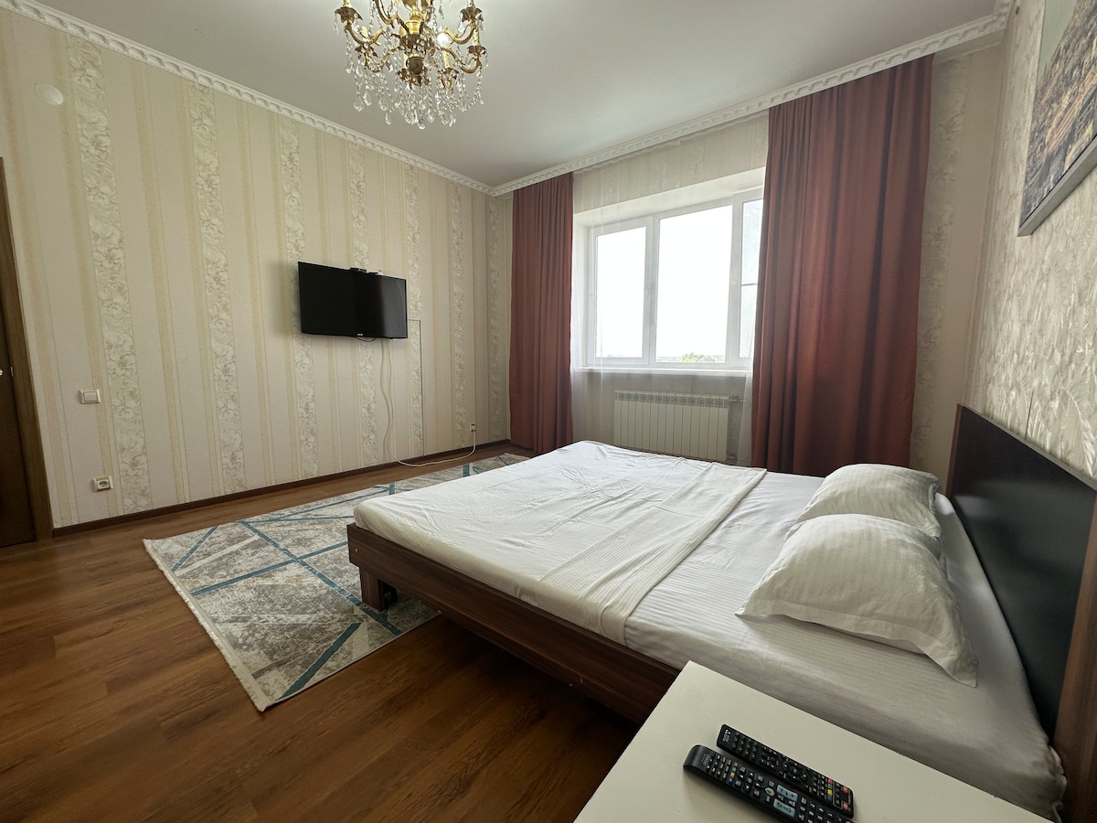 Profitez d'un merveilleux séjour au cœur de la ville. L'appartement est lumineux,propre,confortable, très chaleureux. Après rénovation Tous les appareils sont fournis pour votre confort. Ustensiles de cuisine,vaisselle. Linge de lit propre, serviette,sèche-cheveux, articles d'hygiène jetables (gel douche, shampoing, brosse à dents) À proximité, il y a une clinique Kuanysh, des restaurants, des cafés, Hyper Anwar, Yurt Park, la Flamme éternelle, des banques, un bureau de change, un lave-auto, des magasins ouverts 24h/24. A/C Atlant, Tsong. Tout est à quelques pas seulement.
