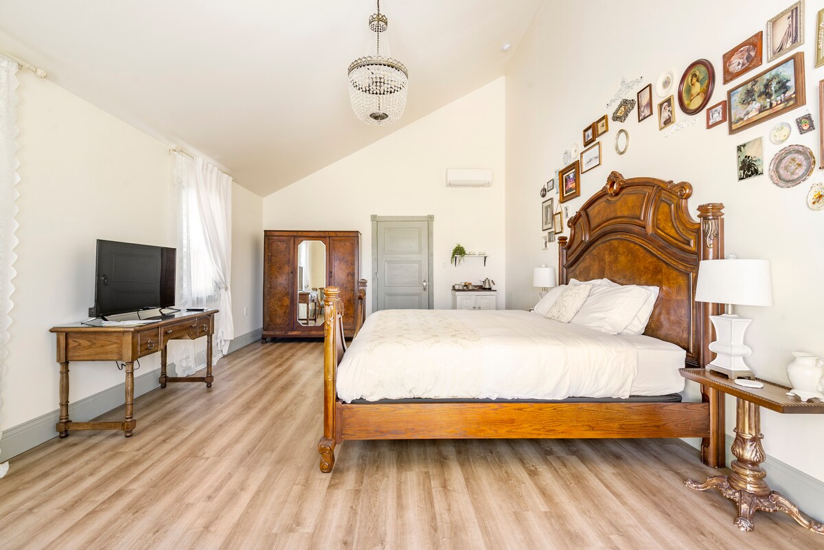 Cette annonce concerne la location de l'ensemble du bâtiment Carriage House, qui est composé de deux suites séparées, reliées par une cour de liaison. Les deux chambres peuvent être réservées individuellement sous des annonces distinctes, ou ici comme un espace combiné et spacieux de 1037 pieds carrés. Cette auberge unique sous les peupliers se trouve dans le centre de Corrales sur un domaine de 1,5 acre. Elle allie l'élégance victorienne historique au confort moderne luxueux.