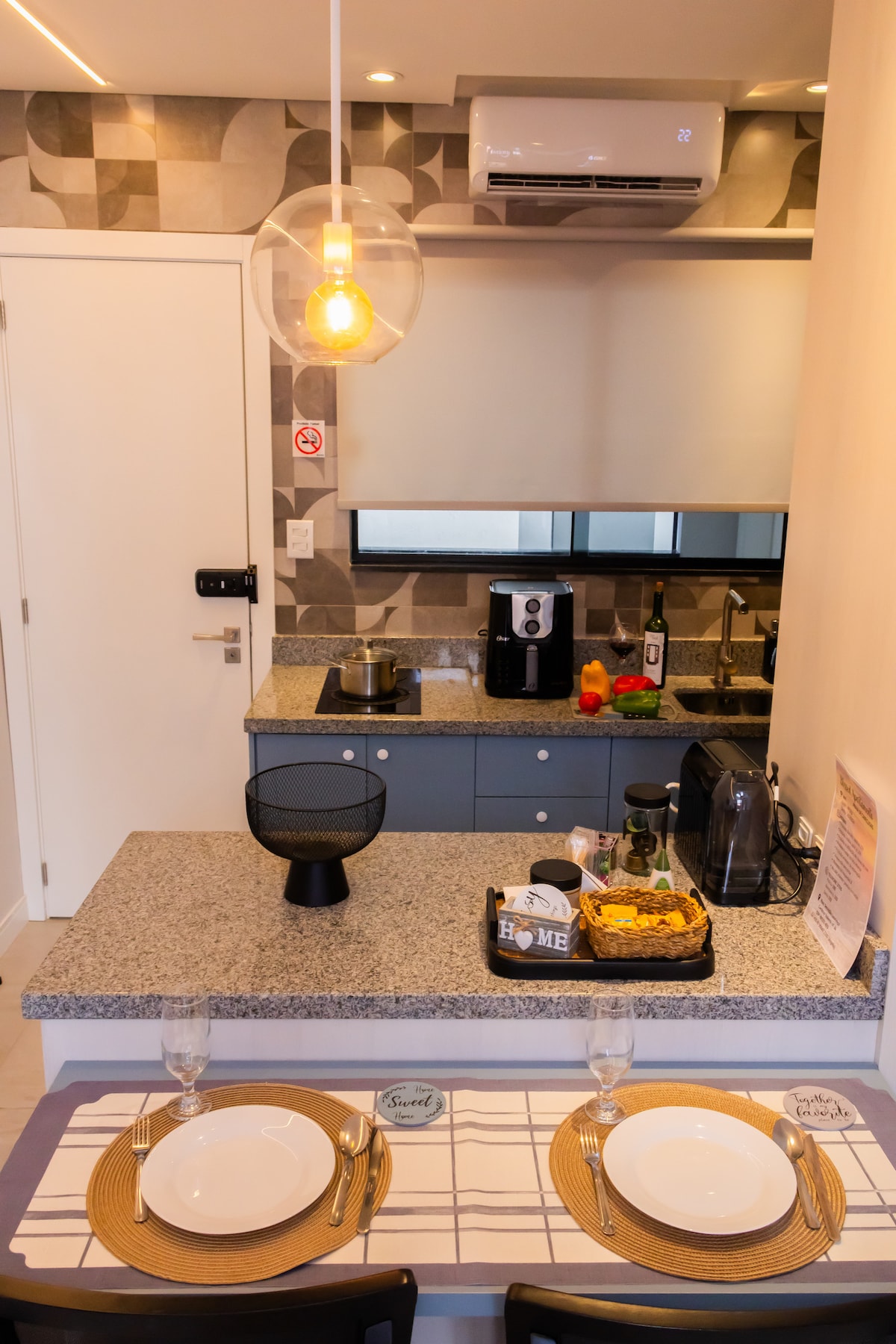 Apê de 65m² : Climatisation dans le salon et dans les chambres Cuisine complète Espace de bureau à domicile Télévision connectée et streaming Wifi haute performance Jusqu'à 10 personnes Tout comme le linge de lit et les serviettes la salle de bain est fournie La copropriété dispose de : Terrain de jeux extérieur Salle de jeux pour enfants Ping-pong et table de billard Some Distances : 04 km Centro de Eventos Itajaí 10 km Praia Brava de Itajaí 20 km Greenvalley Cet appartement est en mesure de recevoir essais photographiques et commerciaux