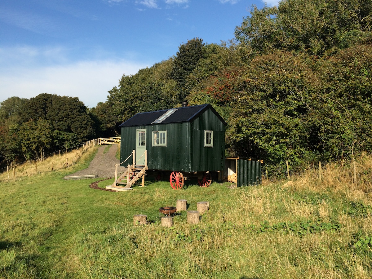 La hutte Le séjour comprend un lit super king size avec un surmatelas en mousse confortable. Table de chevet/tiroirs, une armoire et une table pliante avec deux chaises. Un chauffage au mazout mural efficace maintient l'espace confortable et chaleureux pendant les périodes plus fraîches de l'année. Un coin cuisine compact comprend de la vaisselle et des couverts, une bouilloire, un grille-pain, un micro-ondes et un réfrigérateur. Salle de bains avec toilettes, douche et lavabo. Stationnement : une grande allée fournira un espace pour une voiture ou un petit camping-car, chargeur EV. Points Wi-Fi et USB.