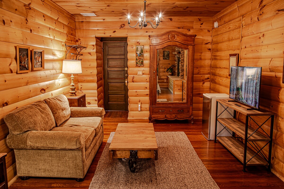 Forest Inn de Saugatuck est votre escapade paisible et privée. La suite Pine est une expérience vraiment unique et authentique. Cet espace au deuxième étage a été créé avec un motif rustique de cabane en rondins offrant une retraite spacieuse mais confortable. La salle de bain est entièrement carrelée, avec une douche surdimensionnée et une grande baignoire. Vue imprenable sur la forêt, coin salon et cheminée double face pour un séjour intime et mémorable. Le système de chauffage et de climatisation dédié au deuxième étage, récemment installé, offre un confort parfait.