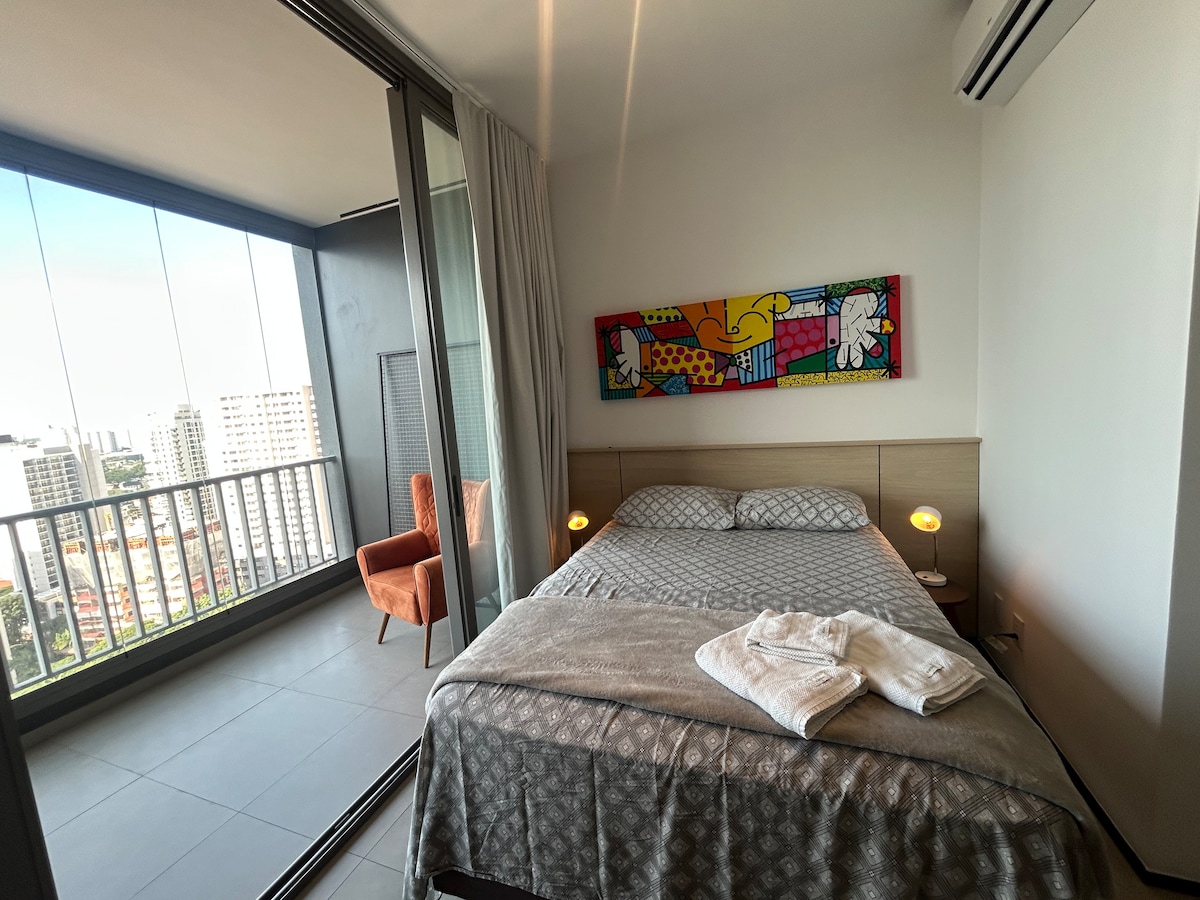 Studio recém reformado, com estilo próprio, urbano e cosmopolita. De alto padrão, lindo, criativo e bem localizado, com vista privilegiada do 21 andar para o Allianz Parque. Ao lado de diversos comércios, meios de transporte, parques, pontos turísticos e edifícios empresariais. O studio é completo, com cama de casal confortável, cozinha com todos utensílios, frigobar com freezer e internet de alta velocidade. Perfeito para pessoas que valorizam experiências memoráveis e únicas.