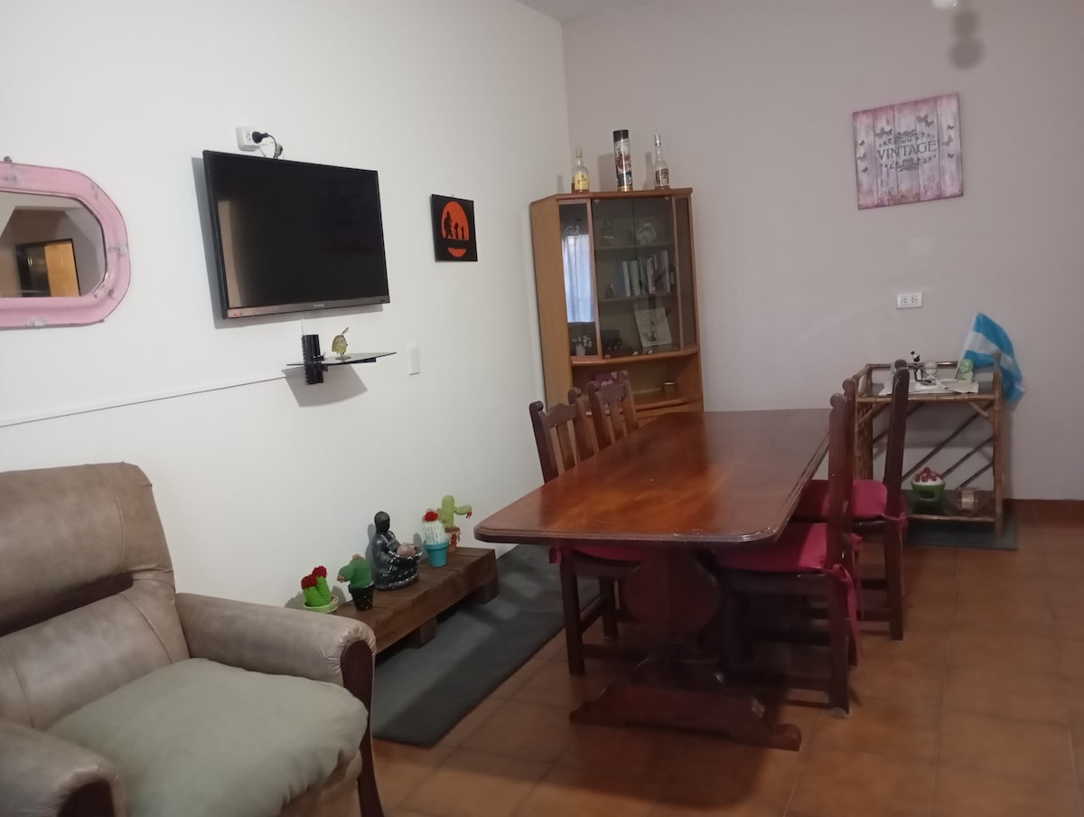 Belle maison entièrement équipée pour accueillir 2 personnes située sur V. Alsina 740 entre Spiro et Russel. La maison est équipée de ce qui suit - Chambre avec 2 lits simples. - Salle à manger avec table 4 personnes. - Cuisine entièrement équipée avec four électrique, réfrigérateur avec congélateur, bouilloire, casseroles, assiettes, verres, couverts et objets de nettoyage. - Salle de bain complète. - Jardin entièrement clos. (Pas de téléviseur)