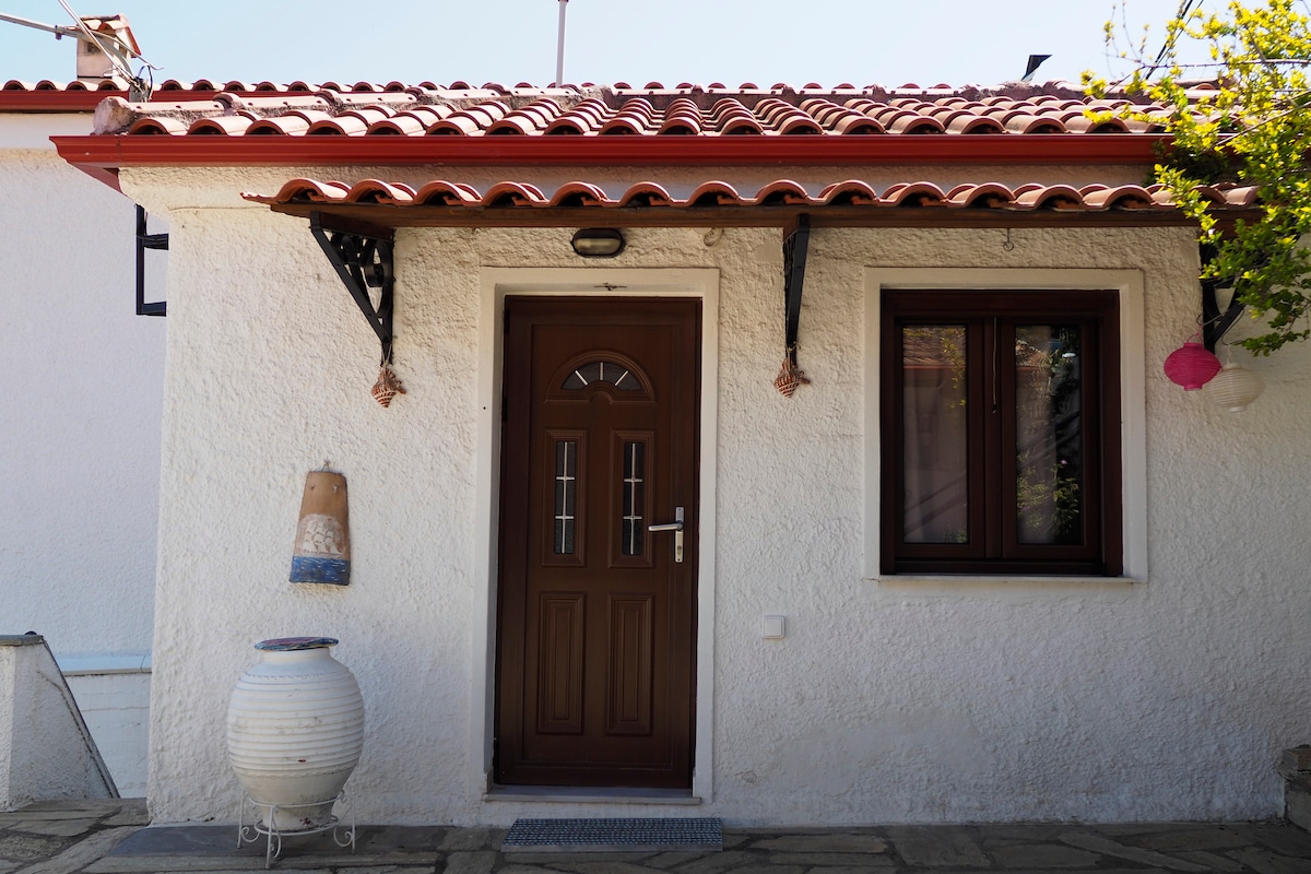 Une maison en pierre de campagne vous donne l'occasion de l'intimité et de la détente. Entouré d'oliviers et d'une vue imprenable sur la mer Égée. Le Petit Stonehouse se trouve à cinq minutes en voiture de la plage de Mulopotanos et à cinq minutes du village de Tsagarada. Également disponible BBQ - Refroidisseur d'air - foyer - TV - Eau chaude