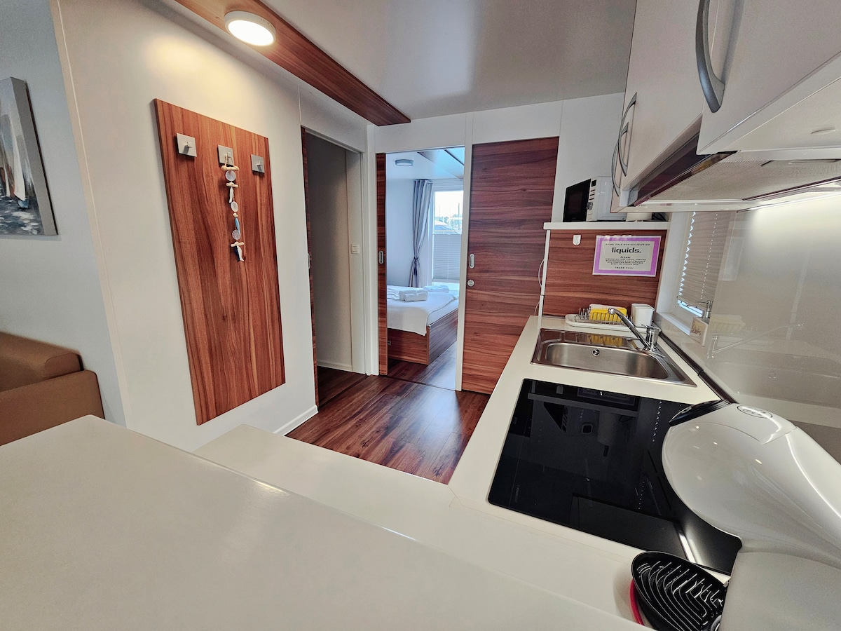 Découvrez la maison flottante climatisée de Miramare, accueillant jusqu'à 6 voyageurs. Laissez-vous emporter par le rythme tranquille de la vie sur la mer. La maison comprend une cuisine entièrement équipée, un salon confortable avec un canapé-lit et une table à manger, deux chambres et une salle de bain. Montez sur la terrasse, où vous attendent des meubles d'extérieur, des chaises longues et un jacuzzi, le tout avec une vue imprenable sur la mer. Votre séjour est complet avec des draps, des serviettes, une télévision à écran LCD et une connexion Wi-Fi gratuite. Bienvenue chaleureusement !