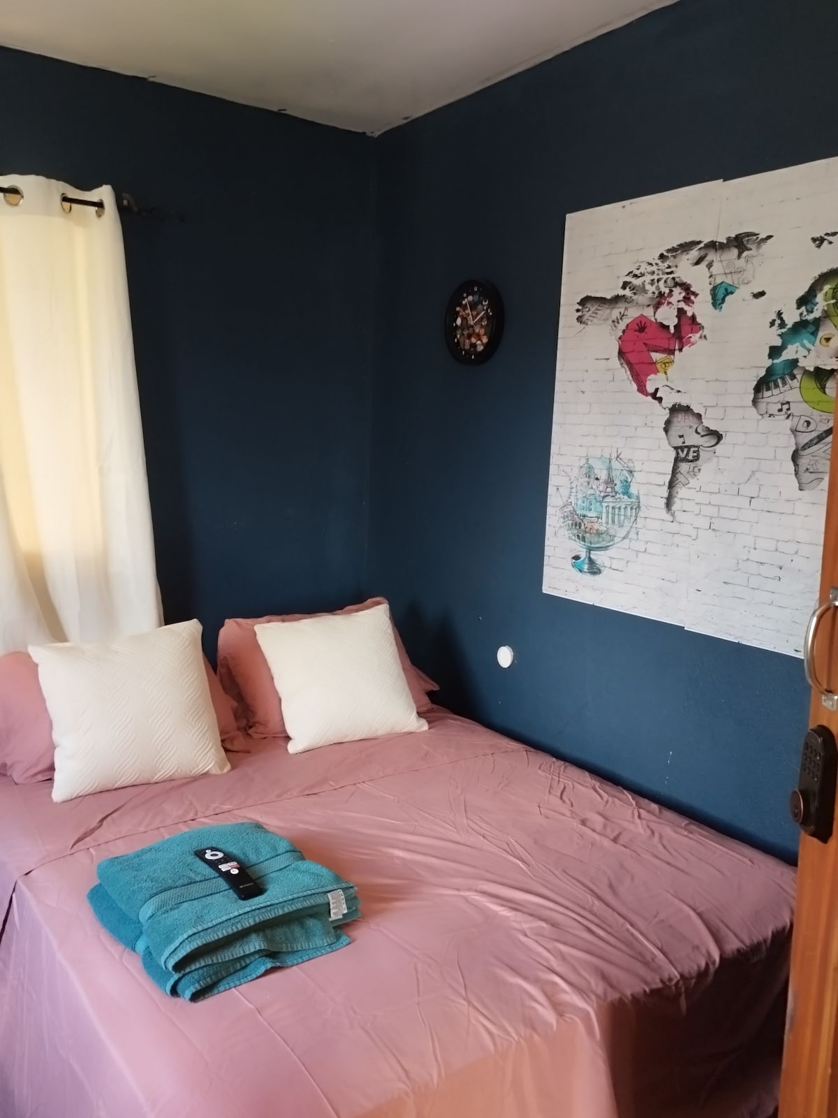 Petite maison située derrière notre maison, elle est indépendante. Elle est à 18 minutes de l'aéroport, à 3 minutes du Terronal, à 40 minutes de Boquete EN VOITURE, en face de la barriada passent des bus qui montent à Boquete et par la même route redescendent. (Vous devez marcher environ 10 minutes pour arriver à l'entrée de la Barriada pour prendre un bus) (Nous offrons un service de transport avec un coût supplémentaire). Wifi stable, nous avons également une maison en haut de boquete et une à dolega que nous louons sur airbnb.