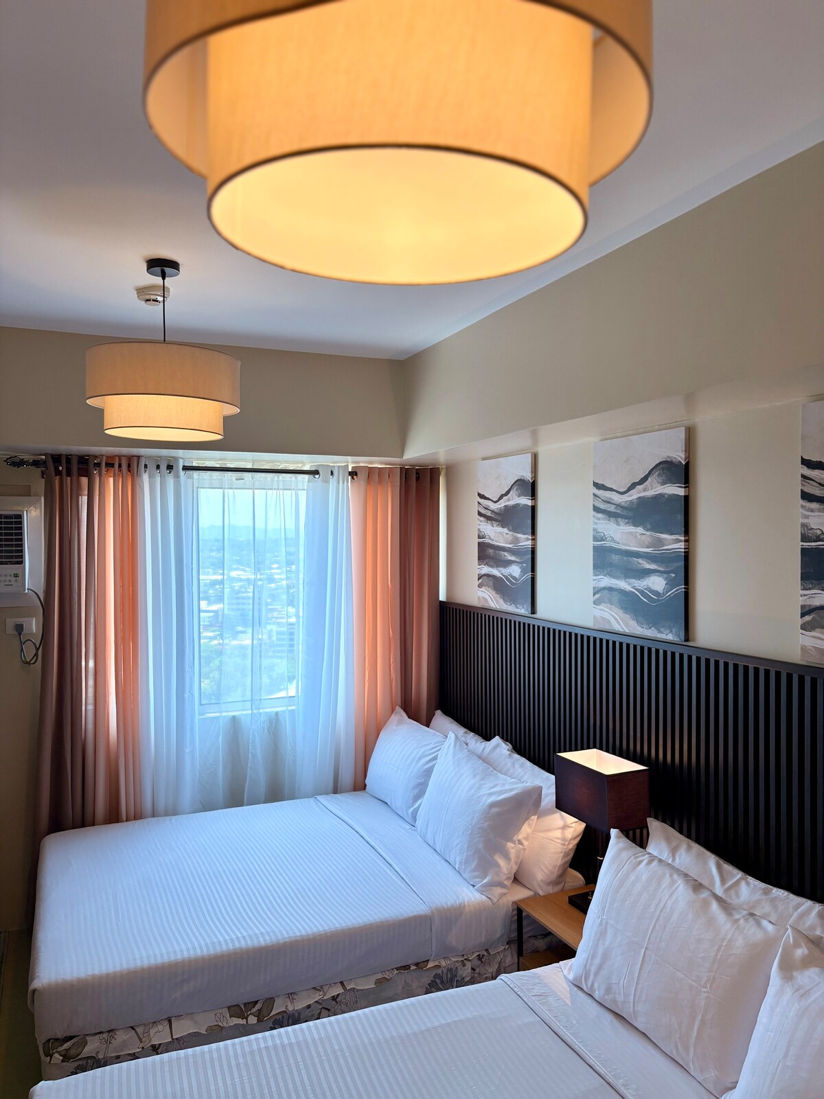 Un appartement d'angle serein et design d'une chambre au 24e Ă©tage de la Tour 1, Avida Towers Aspira, situĂ© au-dessus du cĆur de la ville de Cagayan de Oro. AncrĂ©e dans le design moderne, la piĂšce met en valeur un Ă©clairage d'ambiance chaleureux, des lignes Ă©purĂ©es et des dĂ©tails Ă©lĂ©gants qui crĂ©ent Ă la fois confort et sophistication. Que vous souhaitiez vous dĂ©tendre, explorer ou travailler Ă distance, le lit queen size vous promet un repos profond, tandis que la vue imprenable sur la ville vous rappelle que tout ce dont vous avez besoin est Ă proximitĂ©, mais suffisamment loin pour vous offrir la tranquillitĂ© d'esprit.