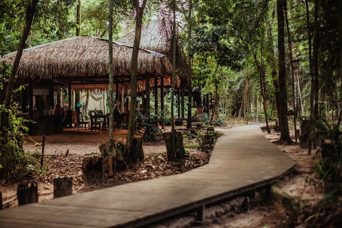 En entrant, déchargez votre téléphone portable, votre ordinateur et votre esprit. Rechargez ici vos énergies et vivez des expériences uniques avec ceux que vous aimez, après tout, l'espace est une véritable immersion dans l'expérience et la beauté de la nature amazonienne. Réveillez-vous au son de la forêt dans une charmante cabane privée au bord de la rivière Negro. Ici, vous pouvez faire du canoë sur la rivière, de la randonnée dans la forêt, du vélo, de la pêche ou simplement vous détendre dans l'eau en face de notre bateau.