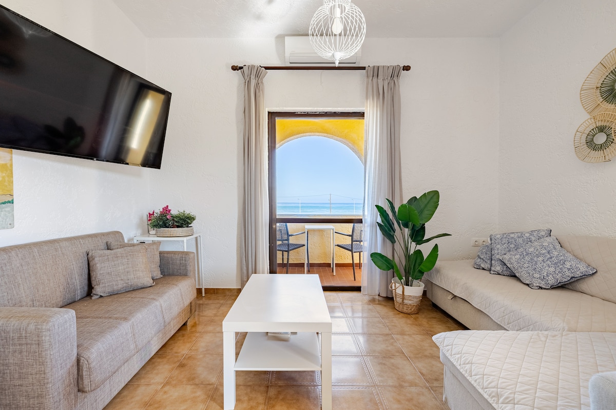 Découvrez l'ambiance de la plage dans cet appartement de 48m ² en bord de mer, à seulement 50 mètres du rivage. Avec un design d'inspiration bohème, une cuisine entièrement équipée, un canapé-lit et une télévision connectée 45", il est parfait pour se détendre. La chambre dispose d'un lit double et d'une chaise balançoire en bambou avec vue sur mer. Profitez du grand balcon avec une vue imprenable sur la plage. Situé à proximité des bars de plage, des restaurants et des magasins, et facilement accessible en transports en commun, cet appartement offre à la fois la tranquillité et la commodité, à proximité des sites archéologiques.
