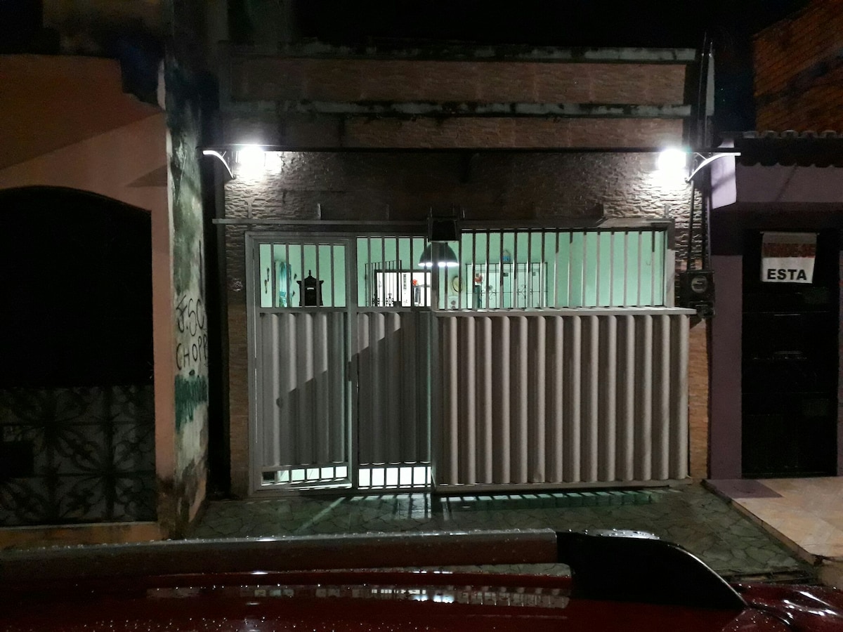 Cozy single-story house with unbeatable logistics for the airport, Mangueirão stadium, city park, and hangar. - Air conditioning in both bedrooms, - Smart TV, - Wi-Fi, - Home office space, - 1 covered parking space, - Fully equipped kitchen, - Laundry room Ideal for up to 4 guests We are located in a safe and quiet neighborhood of Belém, strategically positioned for events and business. Restaurants, bakeries, supermarkets, pharmacies, laundromats, shopping malls, and bus stops are nearby.