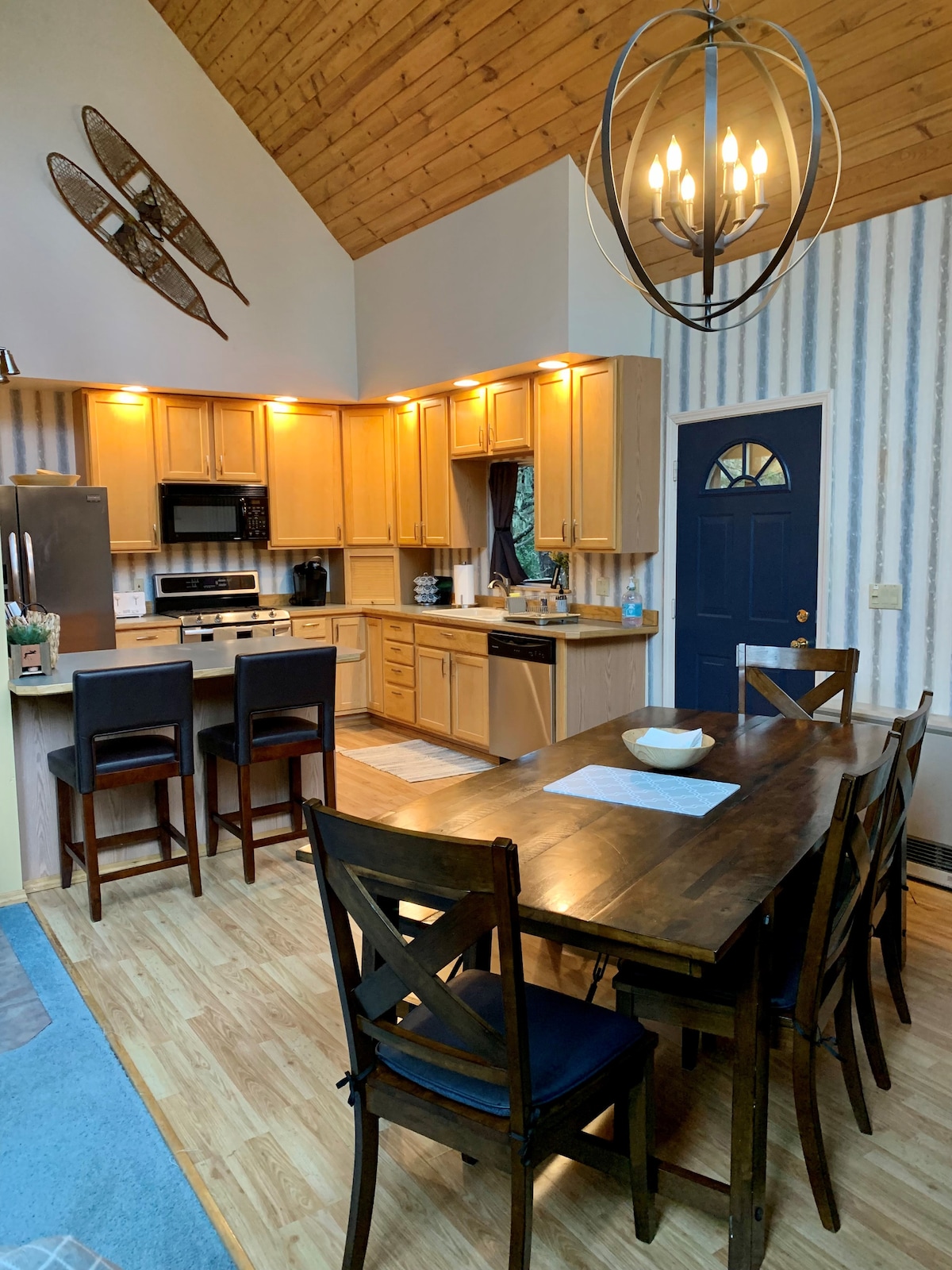 Situé près de la base de la station de ski d'Alyeska, Girdwood, Alaska. Notre chalet de 2400 pieds carrés, entièrement équipé, 3BR est clé en main pour toutes les vacances et nous nous engageons à en faire un excellent séjour pour vous et vos invités ! Idéal pour les couples, les familles ou les petits groupes. À distance de marche des télésièges, des pistes de ski de fond et de randonnée, des boutiques, des restaurants et plus encore. Cet emplacement offre une combinaison parfaite de vues et de proximité de l'accès à la montagne, tout en offrant la tranquillité d'un chalet confortable sur le mont.