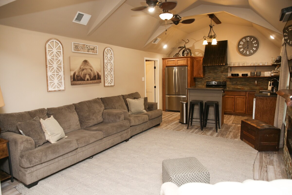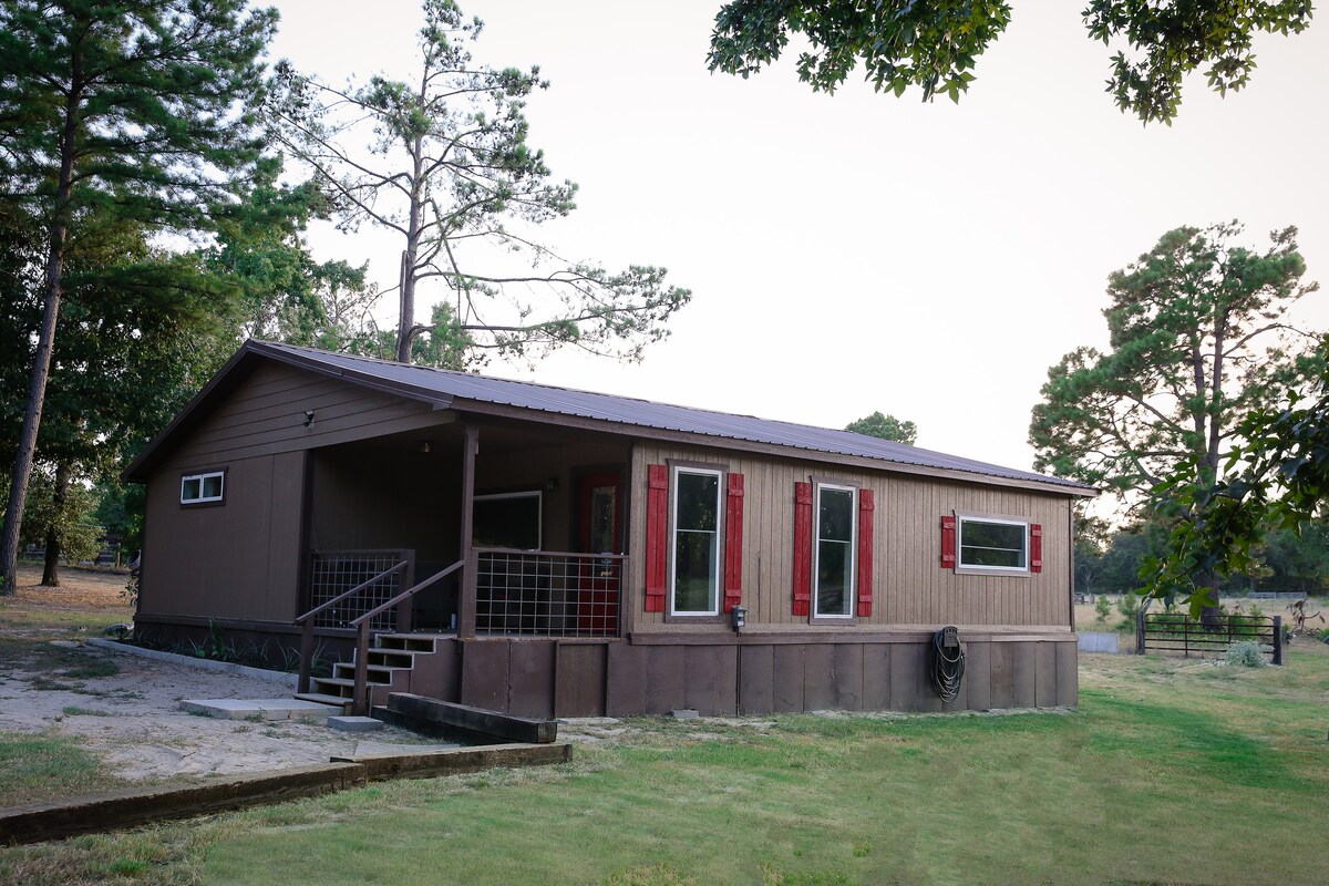 Notre maison d'hôtes a été récemment rénovée et vient d'être répertoriée sur Airbnb. Elle dispose maintenant d'une cuisine entièrement équipée avec un four et une plaque de cuisson à induction, un nouveau sol et d'autres nouvelles finitions. Située dans les magnifiques forêts de pins de l'est du Texas avec une vue imprenable sur les collines et les vallées environnantes. En plus de la maison d'hôtes, vous profiterez d'une salle de jeux/salle d'exercice et de notre magnifique terrain avec un hamac et une aire de jeux pour enfants. C'est l'escapade idéale pour un groupe d'amis ou une famille.