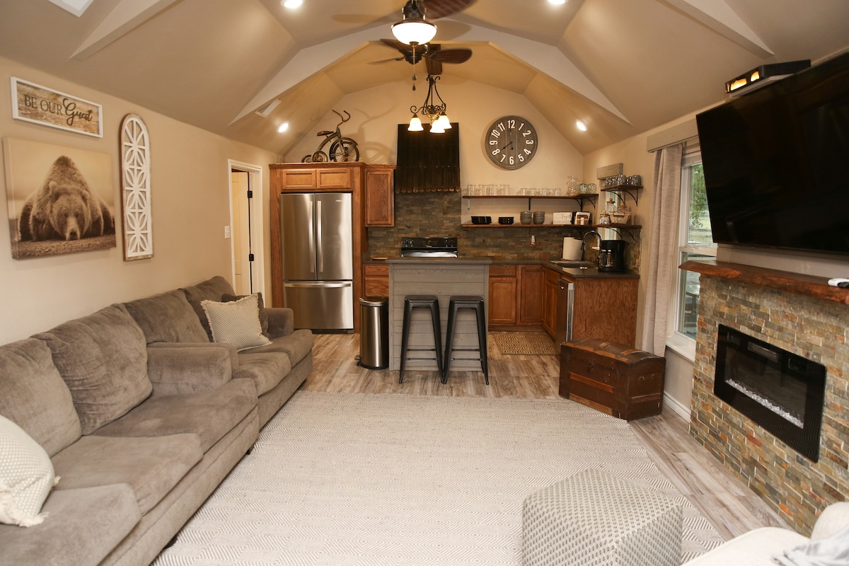 Ce chalet confortable a été entièrement rénové et conçu pour votre confort et votre plaisir. Nous avons pris soin de chaque détail pour rendre votre séjour mémorable. Le chalet est une retraite parfaite à la campagne. Vous apprécierez la nature, entouré d'arbres, d'oiseaux, d'animaux sauvages et d'un beau lever de soleil. Nous sommes situés à seulement 2 miles du centre-ville de Palestine et à 3 miles du chemin de fer de l'État du Texas, mais dans un cadre rural derrière une porte de sécurité avec votre code privé. Les journées commerciales du 1er lundi de Canton sont à 1 heure de route.