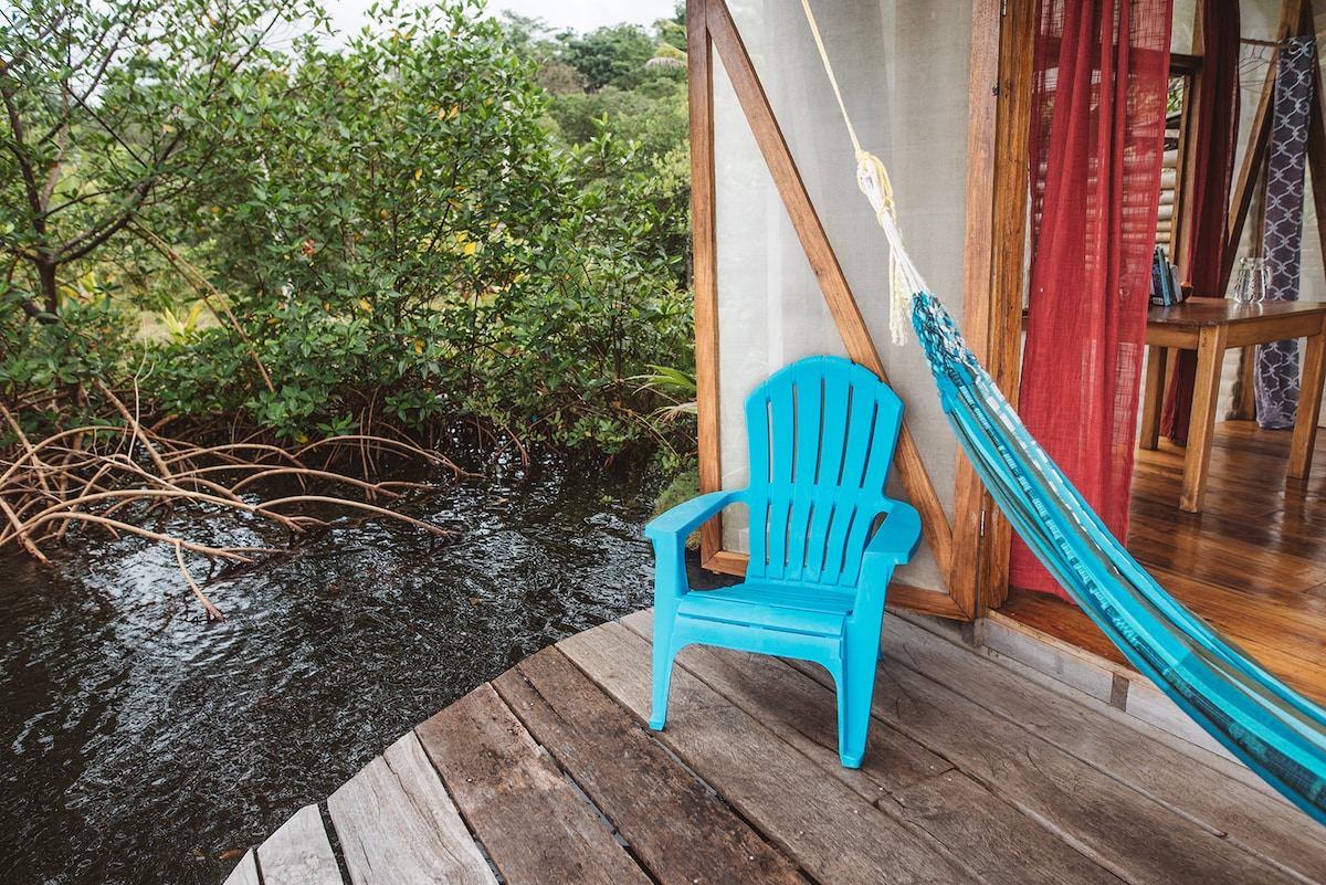 Stratégiquement située pour admirer le coucher du soleil, cette cabane aérée au bord de l'eau est conçue pour une relaxation ultime. Parfait pour les bains de soleil, les couchers de soleil et, à la tombée de la nuit, les eaux bioluminescentes puissantes donnent l'impression que cette cabane sort d'un conte de fées. Un récif corallien borde toute la propriété pour des expéditions de plongée avec tuba, de kayak ou de SUP de classe mondiale ! « Les Jetson rencontrent les Pierrafeu » est l'ambiance ici. Veuillez lire la section « Autres choses à noter » pour savoir à quoi vous attendre !