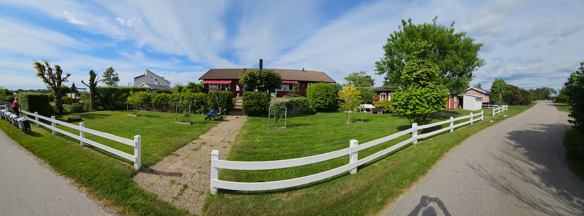 Bienvenue dans un lieu idyllique sur Getterön ! Ici, vous vivez dans un quartier calme et naturel surplombant les prairies de Getterön et avec toutes les baies de baignade à quelques pas. Moi, mon mari et nos jumeaux nouveau-nés vivons dans la maison voisine et sommes disponibles en cas de problème. Il y a une place de parking pour voiture sur la propriété, veuillez noter que des places de parking supplémentaires sont difficiles à trouver dans la zone immédiate. Le linge de lit et les serviettes ne sont pas inclus, mais le voyageur peut les apporter. Accueil chaleureux