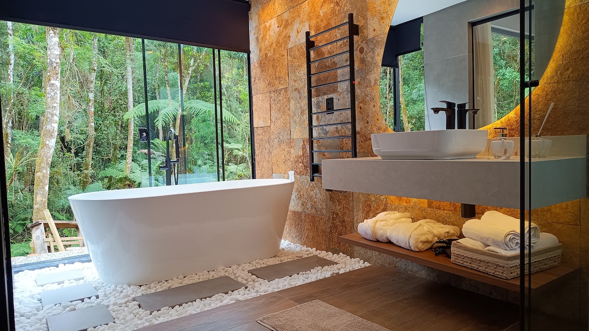 Pousada Morada do Cedro est une retraite luxueuse et moderne située à plus de 1 000 mètres d'altitude, dans les montagnes d'Alfredo Wagner/SC. Avec une architecture élégante en bois et en verre, elle offre une suite confortable, un lit haut de gamme, la climatisation et la télévision. La terrasse privée avec vue panoramique rend chaque moment spécial. Idéal pour les couples à la recherche d'exclusivité, de confort et d'une expérience inoubliable au cœur de la nature.