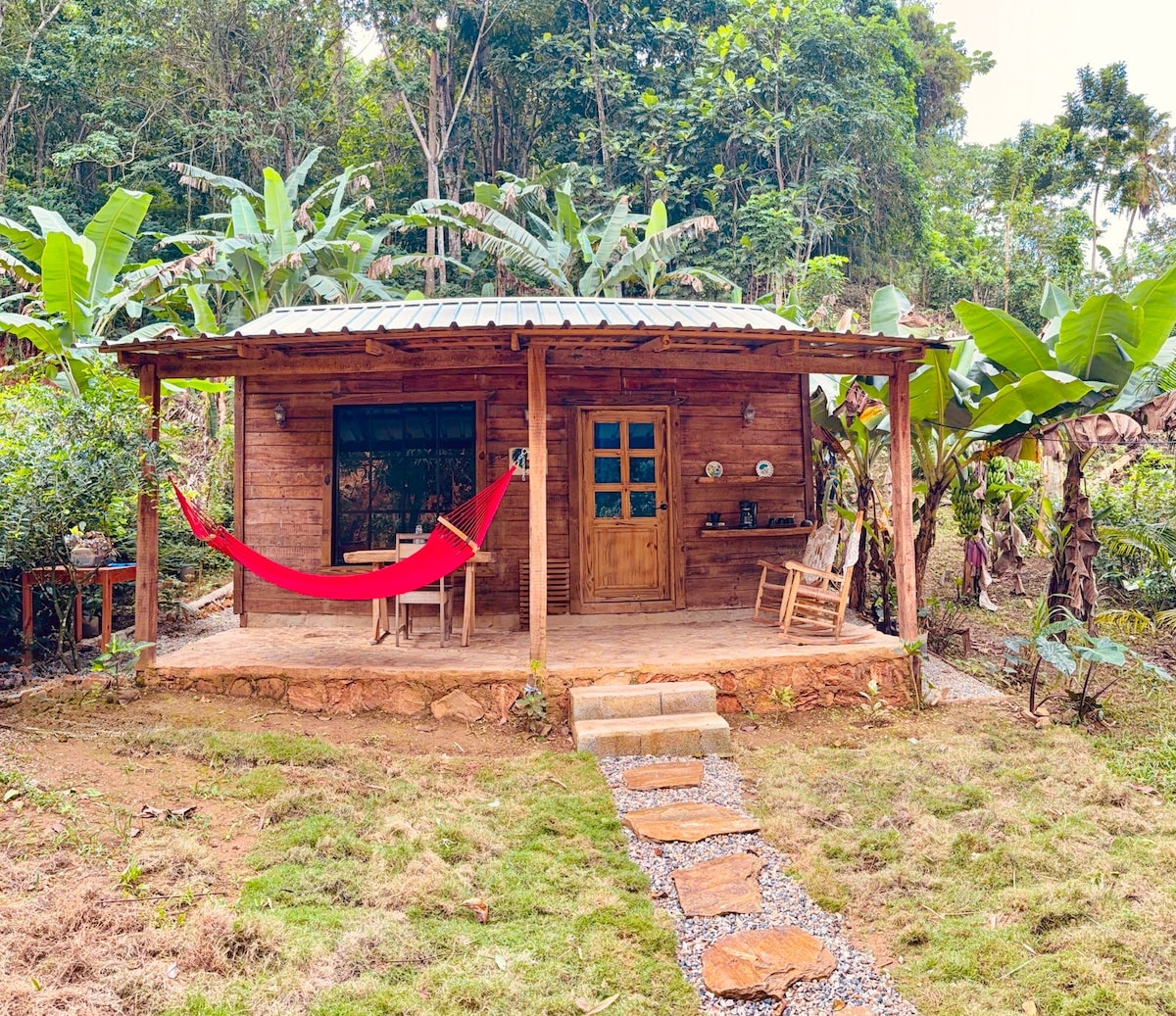 Passez des journées spectaculaires à la campagne au milieu des montagnes de Gurabo, à seulement 30 minutes de l'aéroport SJU. Profitez de notre piscine ou asseyez-vous simplement près de la cheminée et profitez de notre vue imprenable sur la montagne, la ville et la mer. Cette cabane a été conçue pour que vous ayez ce dont vous avez besoin pour vous sentir à l'aise et détendu loin de chez vous, mais sans laisser l'ambiance rustique derrière vous. Parfait pour les événements et les petits mariages, des frais supplémentaires s'appliqueront.