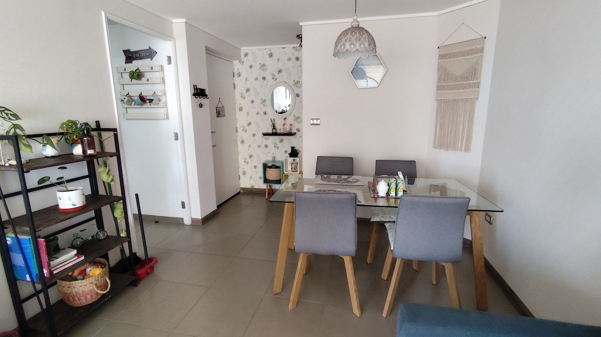Bienvenue dans votre maison temporaire à Antofagasta. Cet appartement est situé dans le secteur nord de la ville à 10 minutes de l'aéroport, au quatrième étage d'un immeuble avec ascenseur et vue sur la mer depuis le salon. Il dispose de : - Une chambre confortable avec un lit double. - Une petite chambre avec un lit de 1,5 place. - Salon avec canapé et télévision par câble. - Internet Wi-Fi. - Cuisine équipée avec tout le nécessaire pour cuisiner. - Lave-linge disponible. - Parking privé inclus.
