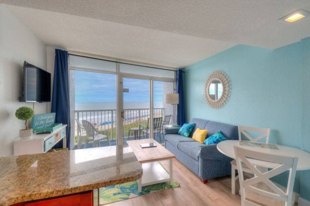 Parmi les 5 % les mieux notés sur Airbnb à Myrtle Beach 🌅 Profitez d'une vue imprenable sur l'océan depuis cette élégante copropriété d'une chambre au Seawatch Resort ! Détendez-vous sur votre balcon privé, cuisinez dans une cuisine entièrement équipée🍳, et détendez-vous avec la télévision connectée, le Wi-Fi et la buanderie dans l'unité🧺. Piscines, jacuzzis, rivières paresseuses et restaurants sur place vous attendent dans ces complexes hôteliers 🌴 – parfait pour les couples ou les petites familles 💙