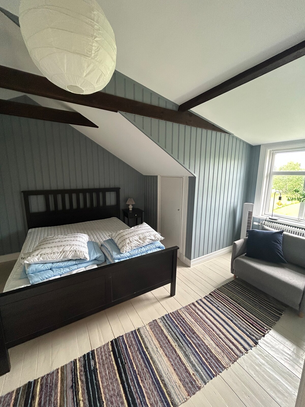 Lidköping centre. Maison privée. Chambre avec lit double