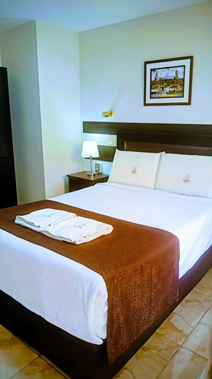 C'est une chambre très spacieuse et jolie, avec un lit double (double), une salle de bain privée avec eau chaude 24 h/24, une télévision par câble, un téléphone et UNE CONNEXION WI-FI. Il est très proche du centre historique à Arequipa