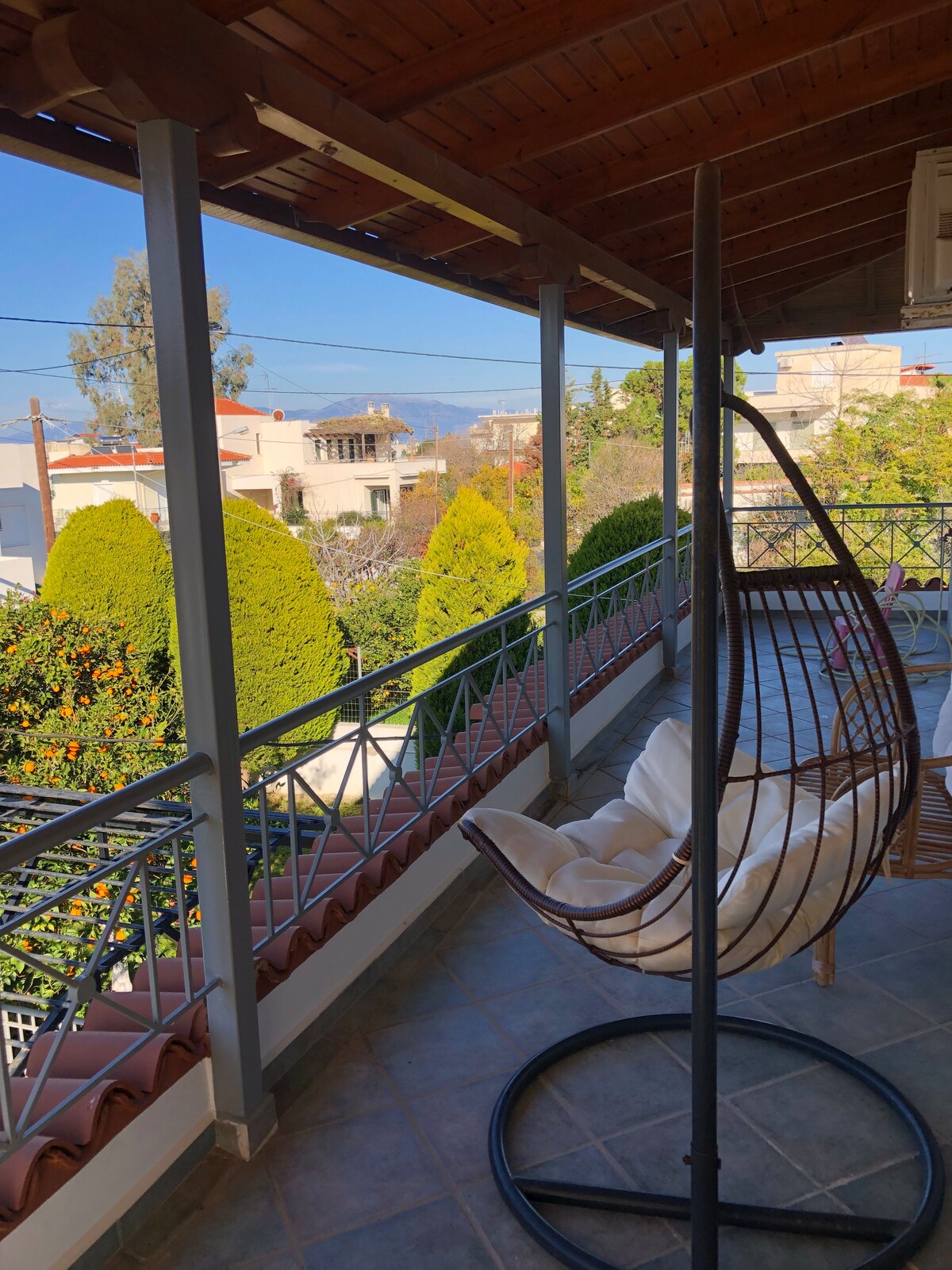 Maison individuelle (53 mètres carrés) décorée avec des meubles anciens. En plein cœur d'Égine mais dans une rue calme. À seulement 200m du port et au cœur du centre ville. C'est un endroit confortable et entièrement équipé et tout ce dont vous aurez besoin. Il n'y a pas d'escalier à l'exception de l'accès au jardin sur le toit. Vous pourrez y déguster votre café ou votre petit-déjeuner sous le soleil. Vous pourrez également vous relaxer dans le hamac et profiter de la vue sur le ciel clair d'Aiginas.