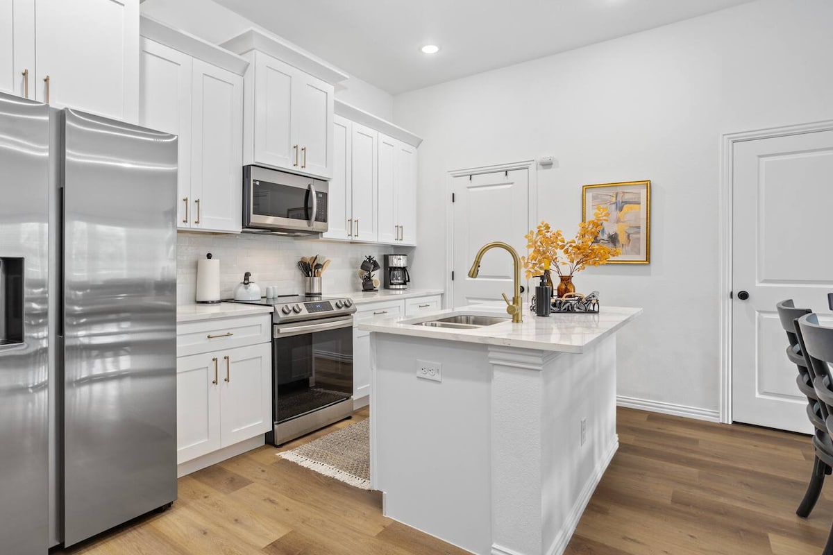 Bienvenue à Sun and Oak, un sanctuaire baigné de lumière naturelle et situé dans le charmant quartier d'Elmwood, à quelques minutes du quartier animé de Bishop Arts. Cette résidence exquise de deux chambres offre une retraite tranquille où les voyageurs peuvent se détendre et se ressourcer au milieu d'un espace magnifiquement conçu. REMARQUE : nous ne proposons pas d'enregistrement anticipé en raison du temps nécessaire à notre équipe de nettoyage pour terminer la préparation de l'unité.
