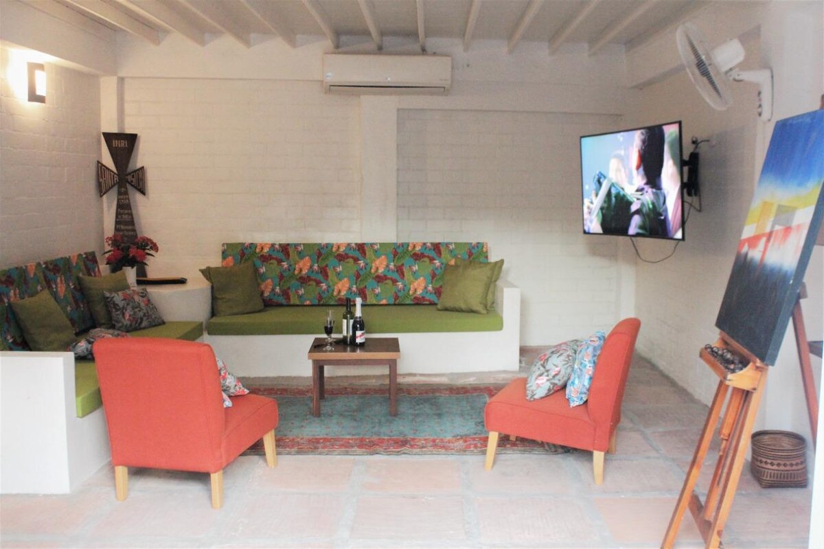 Maison de campagne à Tolima. Endroit spacieux et idéal pour se détendre en famille ou entre amis. Hébergement pour 20 personnes maximum. Barbecue et grill, cuisine au bois, brasero, piscine et jacuzzi, aire de jeux, coin repas extérieur, salon et salle à manger intérieure, raquette, réfrigérateur et cuisine entièrement équipée. Chambres avec climatisation et/ou ventilateurs et lits doubles avec niche. Si vous avez des questions, nous vous contacterons dès que possible. Nous nous ferons un plaisir de vous aider. Visitez-nous