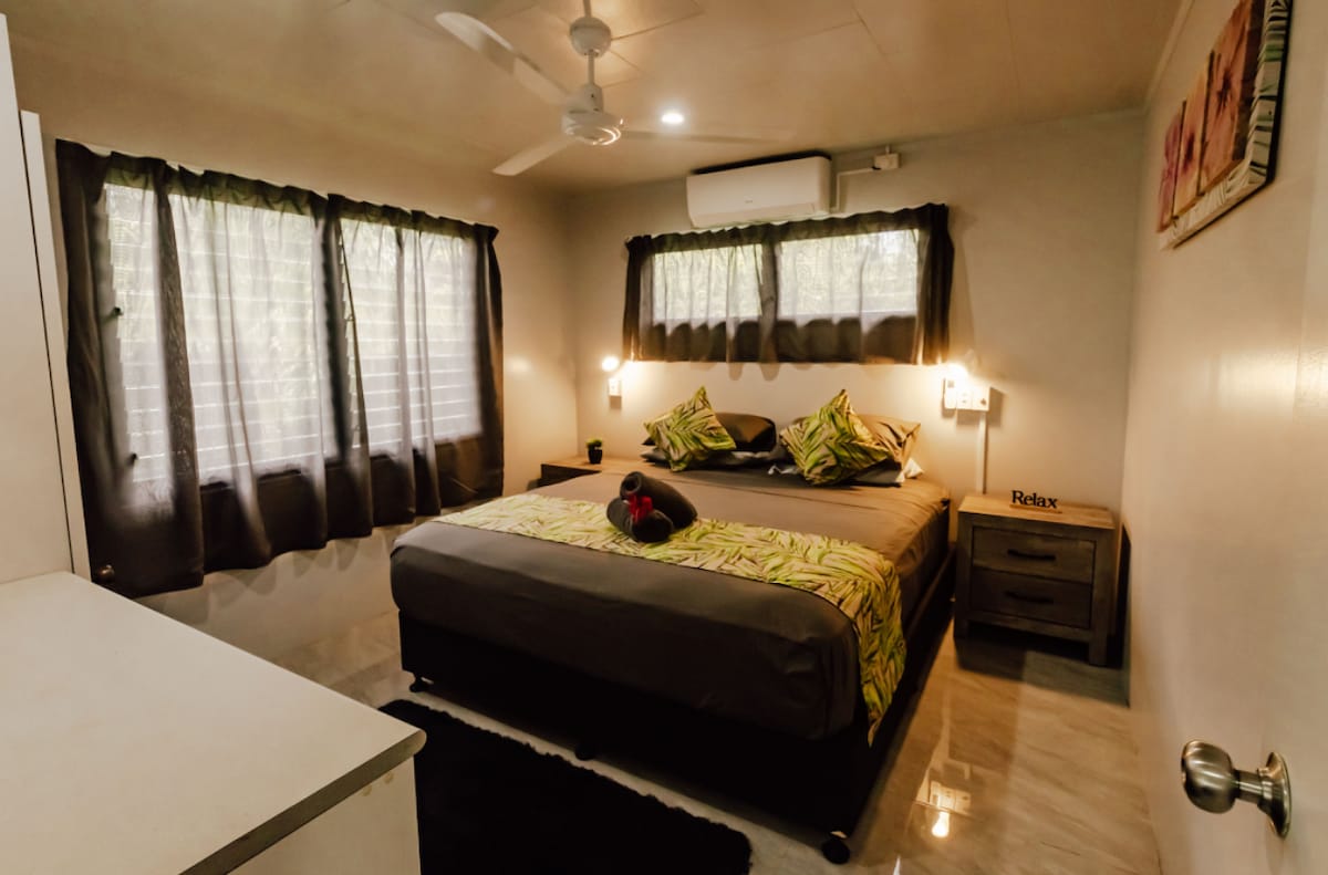 ♒️Climatisation 1 chambre, 🕷️insecte blindé avec villa avec piscine. The Retreat est située près des montagnes luxuriantes ⛰️et des ruelles du quartier d'Arorangi. Détendez-vous dans votre propre piscine privée pendant la journée, puis profitez des étoiles sur la terrasse spacieuse le soir. La grande terrasse a beaucoup d'espace pour se déplacer avec les portes pliantes Bi pour un flux d'entrée et de sortie. Proche des commerces, des restaurants et à seulement 5 à 8 minutes à pied de la plage ou du bus public.
