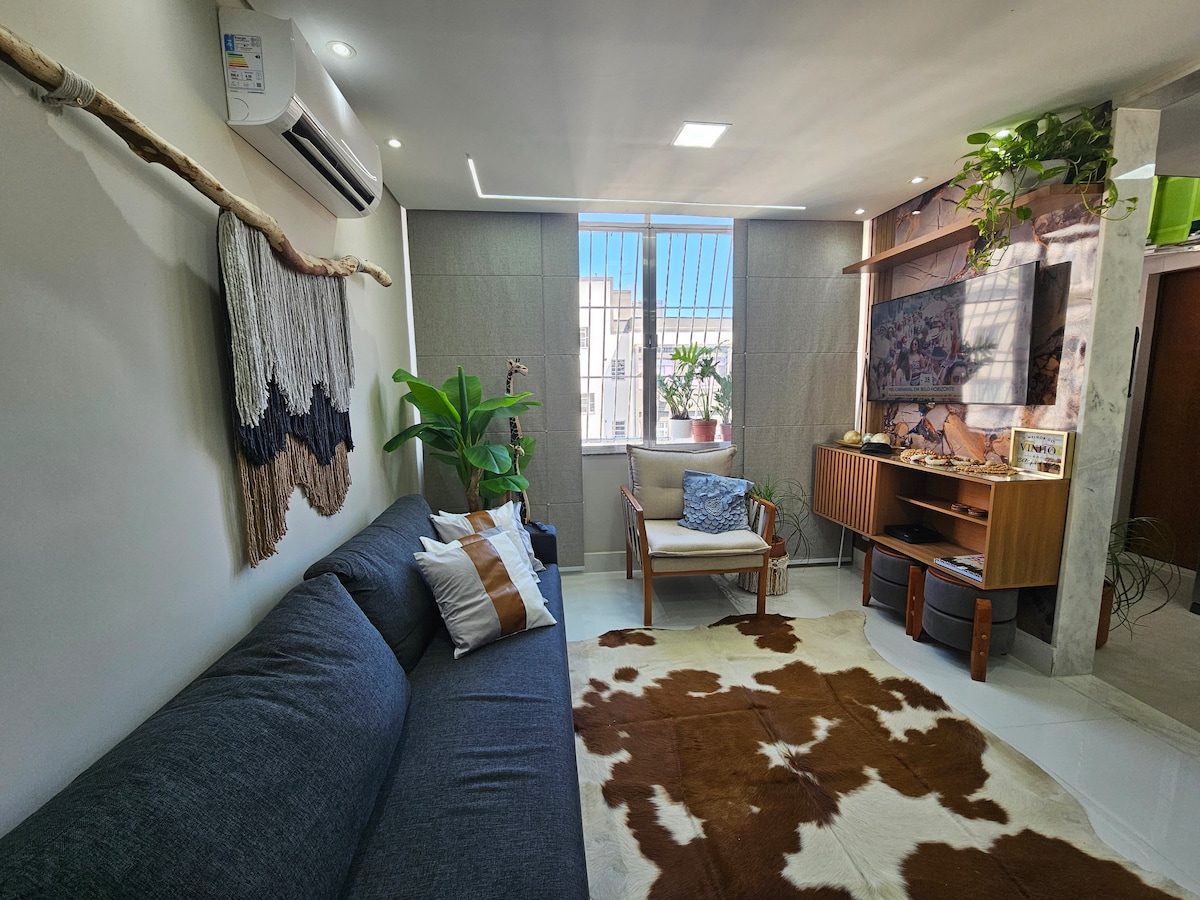 Cet appartement confortable est situé au cœur de Copacabana, à proximité de la plage, du métro, des bus et de toutes les commodités offertes par le quartier ! Rénové et avec des meubles planifiés qui offrent plus de confort et d'espace. La suite est l'endroit où les clients auront des moments de repos et de détente pour profiter de la ville. Composé d'un canapé de 3 mètres rétractable, qui sert de lit double auxiliaire, TV 65 pouces, coin bureau, minibar et lit confortable. Ventilateurs et climatisation.