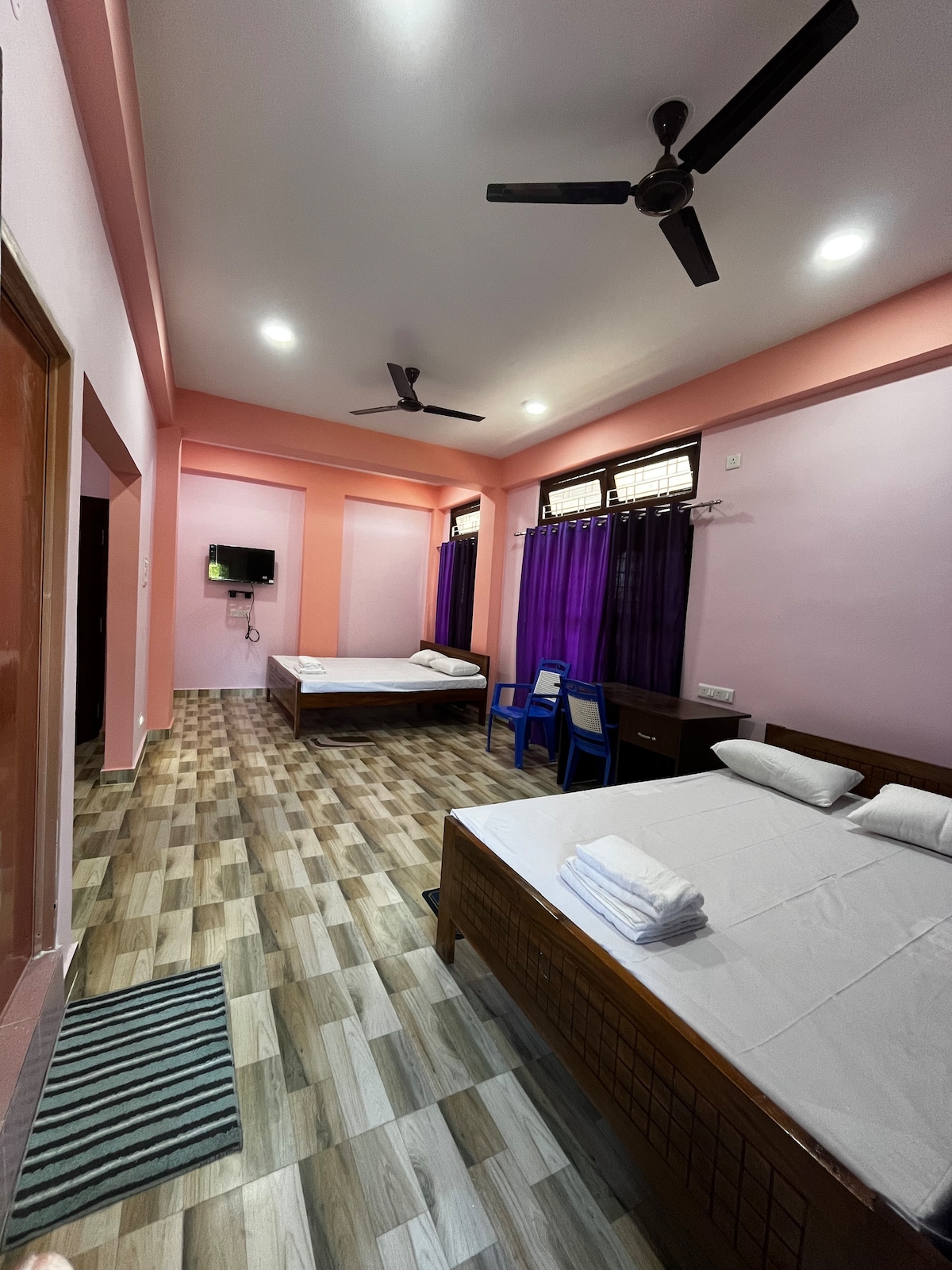 En réservant tout le premier étage, vous aurez accès à : 1. Une chambre de luxe : une chambre spacieuse et bien meublée. 2. Chambre standard : un espace cosy et confortable idéal pour se détendre. 3. Une chambre non climatisée : une option économique. La salle de bain n'est pas attenante à la chambre. Cependant, c'est juste en bas du couloir. Les clients bénéficieront également d'un accès exclusif au balcon, offrant un endroit serein pour se détendre et profiter des environs. Il peut accueillir 7 personnes maximum.