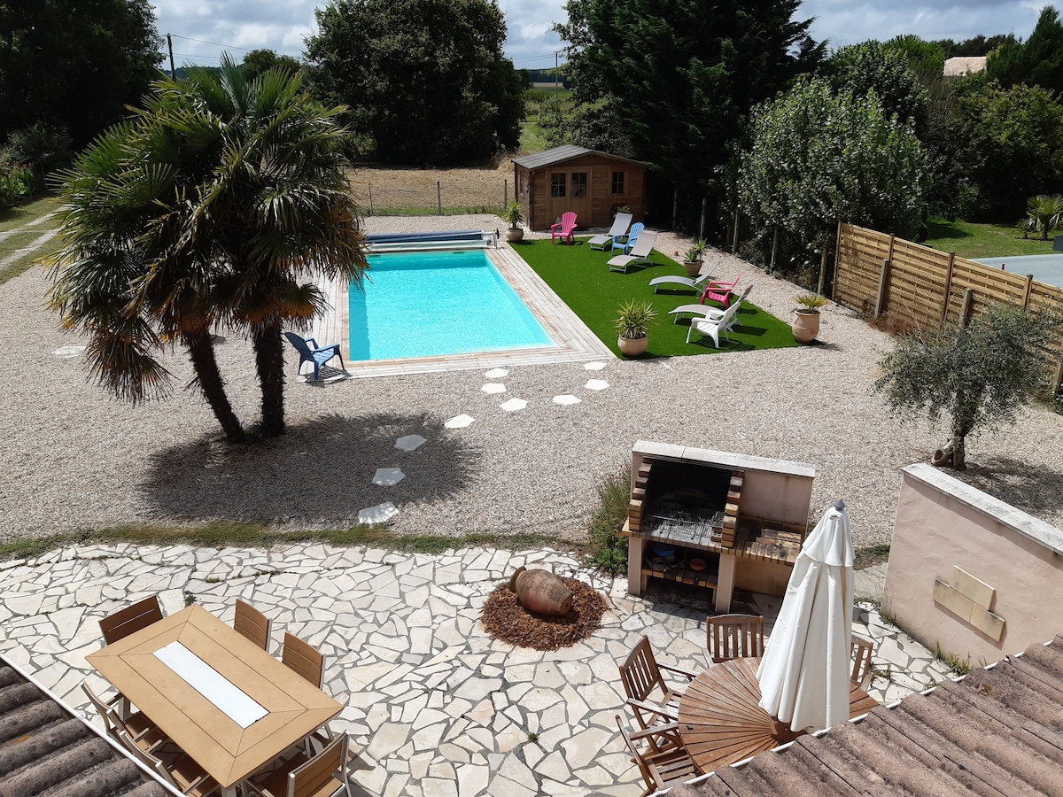 Au cœur du triangle Royan, Saintes et Rochefort, découvrez un havre de paix à la campagne, à seulement 25 km des plages. Le Gîte, spacieux de 110m², est niché sur un ancien domaine viticole de 2 ha datant du XIXe siècle. Profitez de votre terrasse privée et de votre jardin clos. De mi-avril à début octobre, plongez dans la piscine au sel, chauffée à 27°C, partagée avec seulement deux autres voyageurs. Un véritable paradis pour les amoureux de la nature et de la tranquillité.