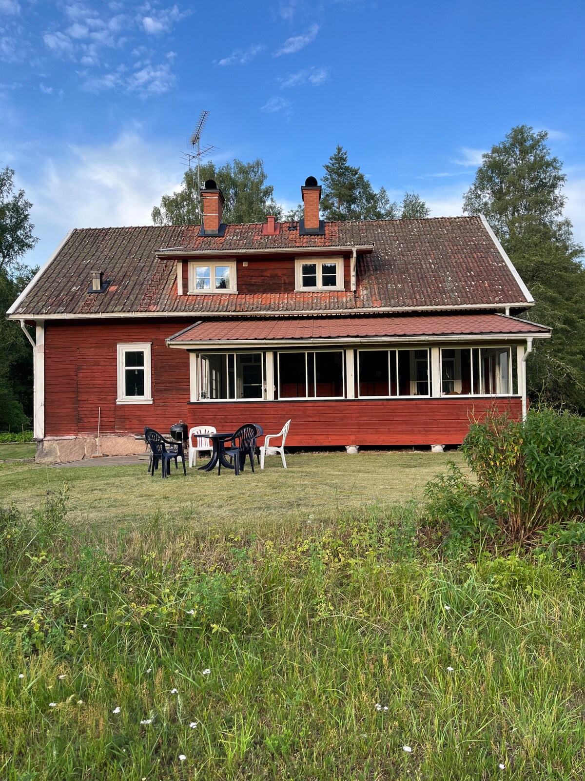 Hébergement dans une ferme rurale. Belle maison pour quatre personnes, possibilité de lit supplémentaire. Vous y vivrez seuls, car le bâtiment principal est vide pendant l'été. Proche de la pêche, de la baignade, de la forêt et des animaux en pâturage. Emplacement isolé, très privé avec de grandes prairies autour de la maison. Possibilité de louer un bateau et de pêcher à seulement 13 minutes à pied de la maison. Environnements passionnants pour les aventures en forêt. Beaucoup de baies et de champignons dans les bois pendant la saison. Sentiers de randonnée dans les environs immédiats.