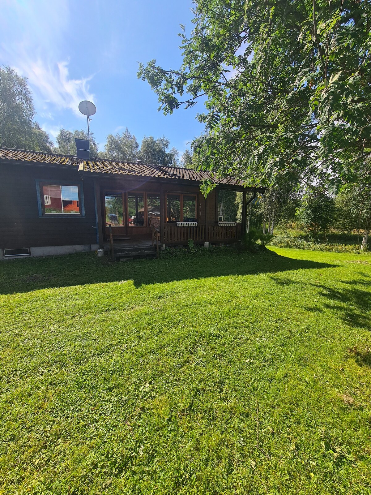 2 adultes et 1 enfant. Chalet frais et confortable. Douche et toilettes dans le chalet. Une grande chambre avec cuisine. Grande terrasse. Superbe vue sur le lac d'Orsa, les montagnes, les champs et les prairies. Notre merveilleux jardin avec des pommiers, des framboises, des fleurs, etc. Ici, vous pouvez vous reposer et recharger vos batteries. Il est à environ 3 km du centre-ville d'Orsa. Une vie ornithologique riche. À 20 min de Grönklitt. Orsasjön avec patinage longue distance et pistes de ski. À 15 km de Mora et de Vasaloppet.
